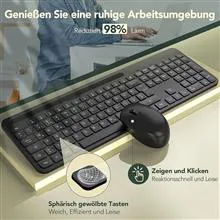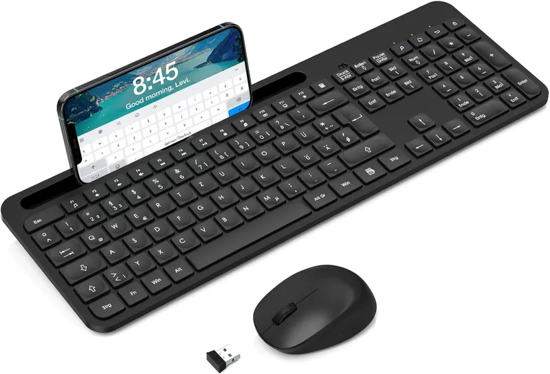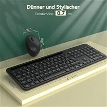 صفحهکلید و ماوس بیسیم، مجموعه بسیار نازک 2.4 گیگاهرتز، مجموعهای با اندازه کامل، ارگونومیک با 18 کلید عملکرد برای لینوکس، ویندوز، iOS، طرحبندی