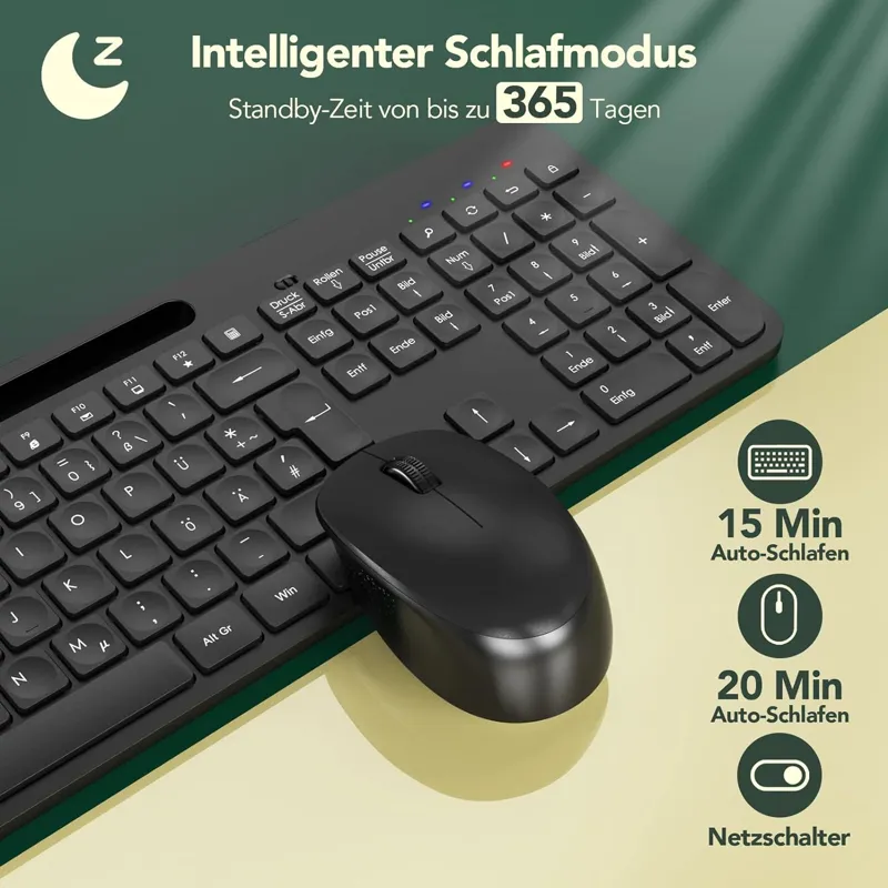 • صرفه جویی در مصرف انرژی: صفحه کلید ماوس بی سیم دارای کلید روشن و خاموش (در پشت دستگاه) است که در صورت نیاز می توان آن را به طور جداگانه روشن و خاموش کرد. اگر به مدت 15 تا 20 دقیقه هیچ اقدامی انجام نشود، برای صرفه جویی در مصرف برق، کمبو به حالت خواب خودکار تغییر می کند. هر کلید فعال، 2 AAA برای صفحه کلید، 1 AA برای ماوس (شامل نمی شود)، تا 12 ماه استفاده.
