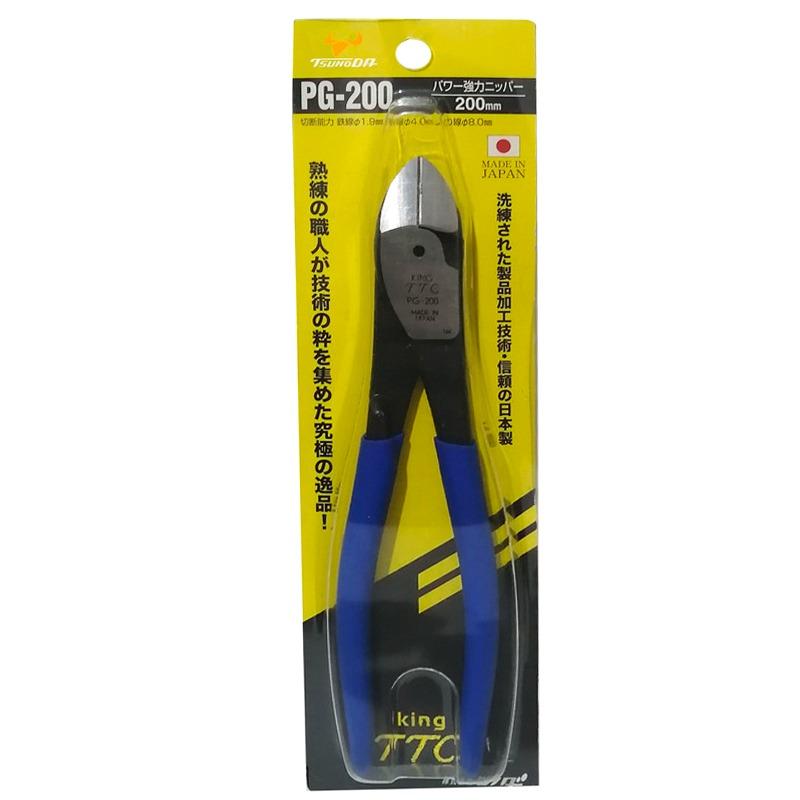 سری king ttc از سری محصولات شرکت ژاپنی تسونودا می باشد . از مشخصات بارز این سری می توان به کیفیت و دوام بالا در کنار قیمت مناسب اشاره نمود .انبر سیم چین مدل PG-200 قدرتمند ترین سیم چین سریking ttc می باشد که برای برش سیم های سخت کاربرد دارد . این مدل کاملا مشابه مدل PW-324DG دیگر محصول تسونودا بوده و تفاوت تنها در جنس دسته آن ها می باشد . فاصله بین تیغه ها و اهرم در این سری کوتاه تر از نمونه های رایج بوده و این ساختار منحصربفرد سبب شده است تا نیروی لازم جهت برش را تا 30 درصد کاهش دهد . از این انبر می توان سیم های مسی تا 4 میلی متر ، آهن نرم 3.2 ،فولاد 1.6 و سیم پیانو تا 1.2 میلی متر را برش داد . به همین دلیل است که شرکت سازنده این سیم چین را در رده انبرآلات heavy duty (مخصوص کارهای سنگین ) قرار داده است . تیغه های این مدل از بهترین آلیاژ فولاد ساخته شده اند که با سخت کاری انجام شده روی آن ها ، عملکردی نرم را فراهم کرده اند . دسته های PG-200 نیز از روکش PVC ساخته شده اند تا مانع لغزش حین کار شوند .