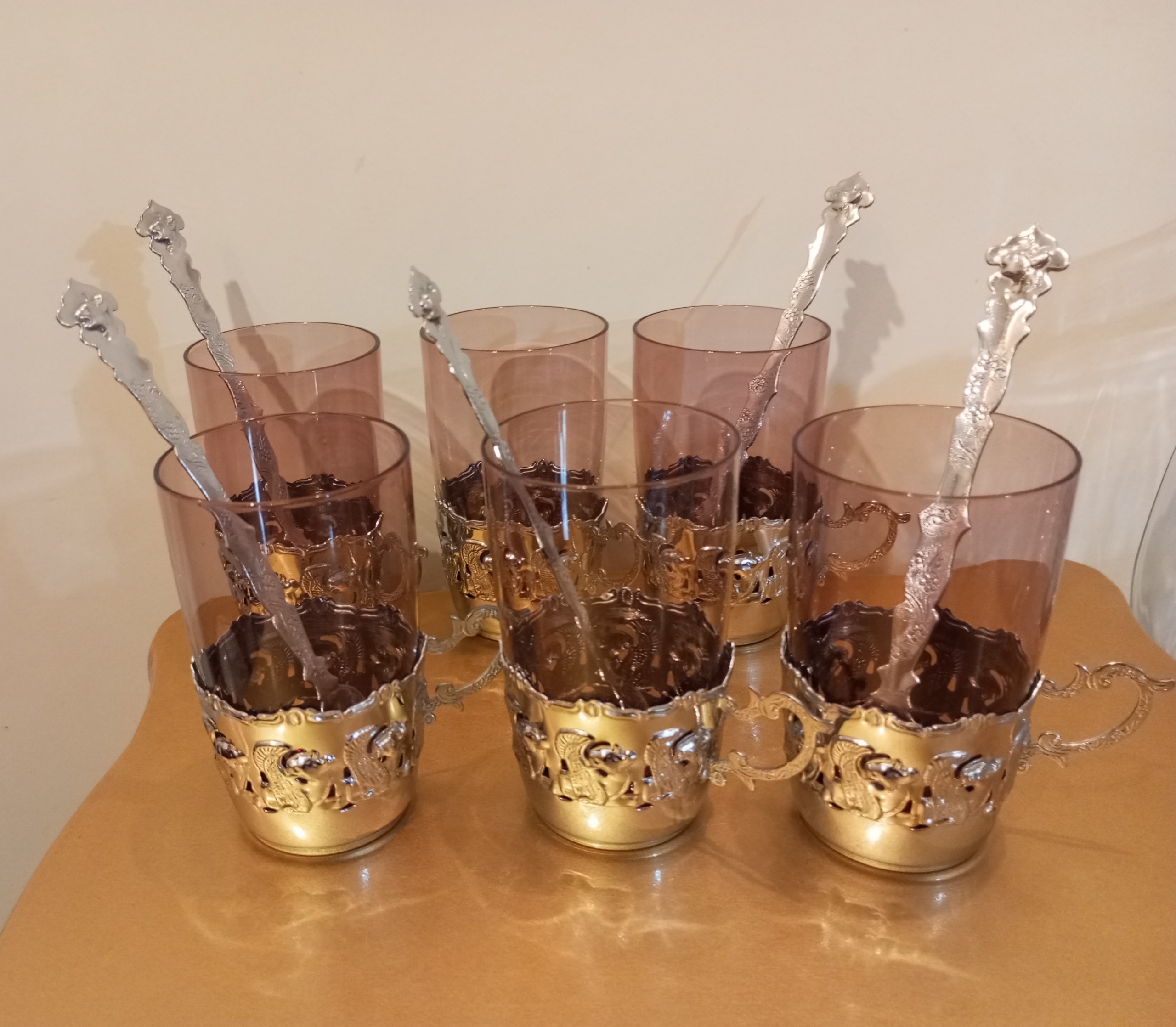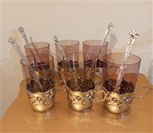 سرویس لیوان آنتیک و قدیمی پیوتر با قاشق و انگاره