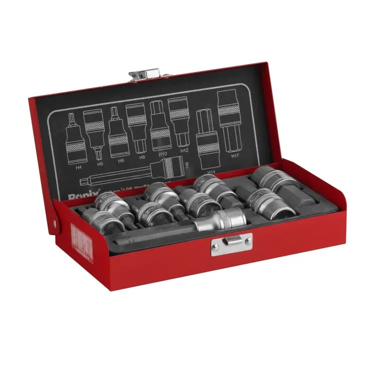 جعبه بکس مدل RH-2692 رونیکس، انتخابی کارآمد و حرفهای است. این مجموعه 9 پارچه، شامل 9 عدد آچار رابط ششگوش با طولهای مختلف و سوکتهای ½ اینچی است. با وجود تنوع سوکت و رابط، کاربران از تنوع و انعطاف بالایی در انجام فعالیت های خود بهرهمند می شوند.