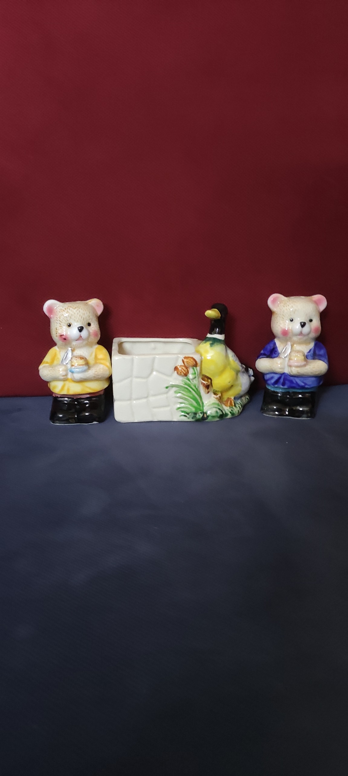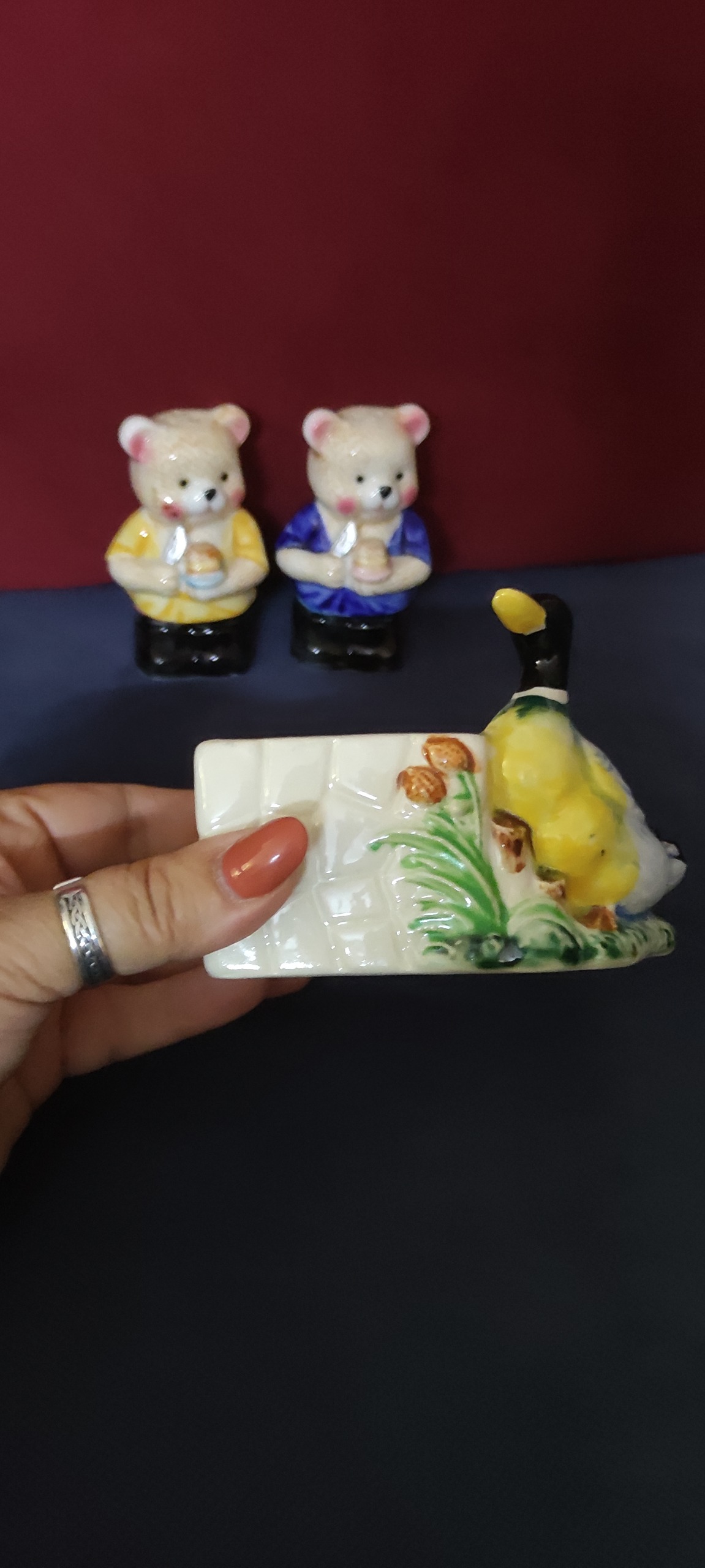 ست سه تکه نمکدان و جا دستمال یا جا قاشق جابخوری یا جا خلالی بنا به سلیقه خودتون، ژاپنی قدیمی آنتیک و کلکسیونی کمیاب طرح حیوانات.
