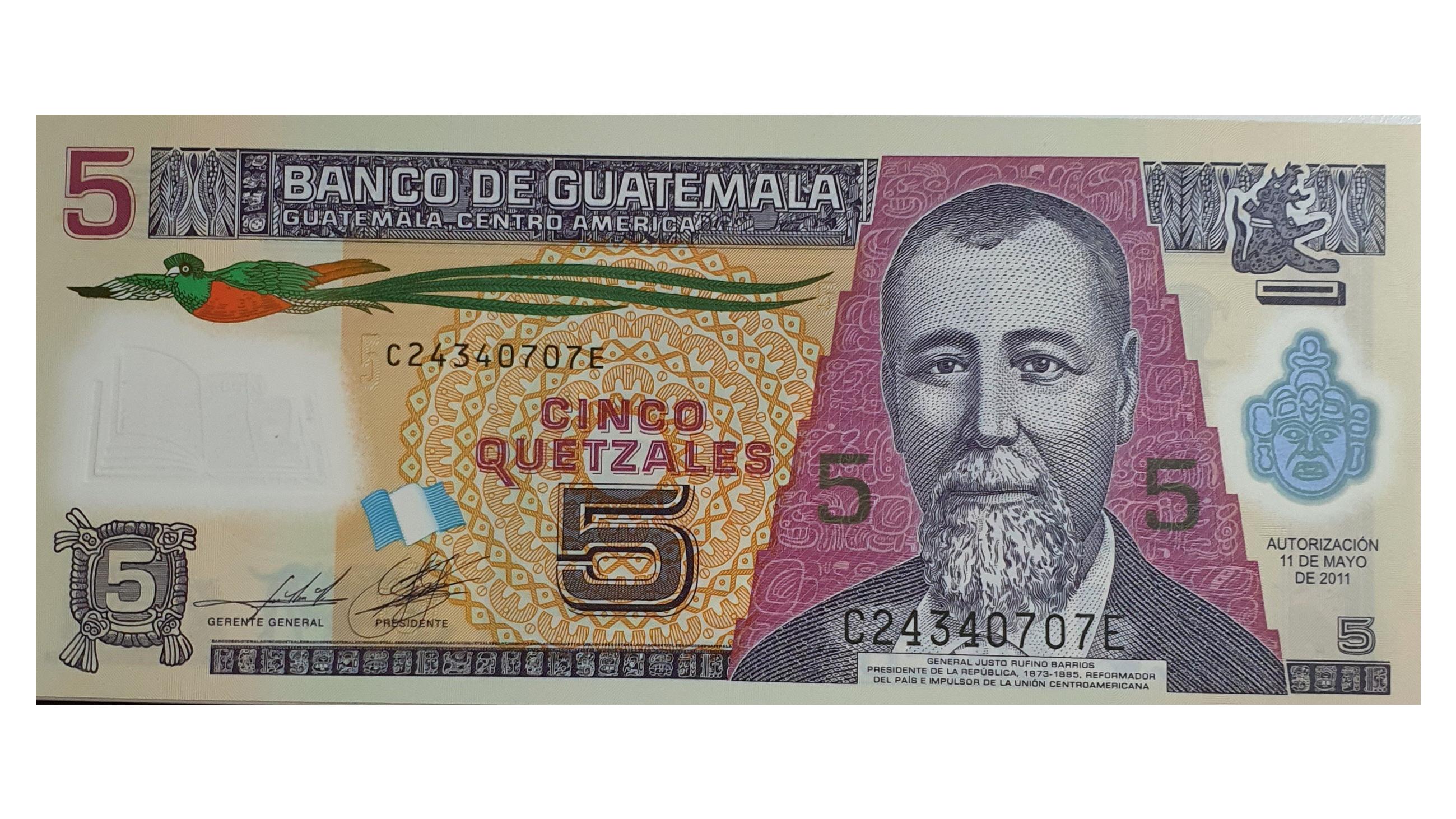 اسکناس پلیمر 5 کوئتزال 2011 گواتمالا