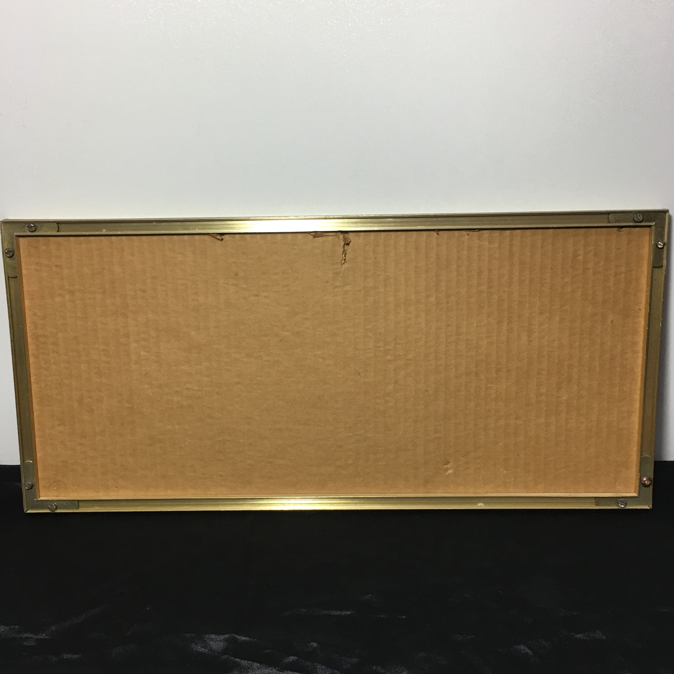 قاب: قاب طلایی کلاسیک و محکم، با شیشه . قاب کمی نشانه های کهنه شدن طبیعی دارد (مانند خطوط ریز یا تغییر رنگ جزئی)، اما هیچ آسیب جدی ای ندارد و کاملاً سالم است.