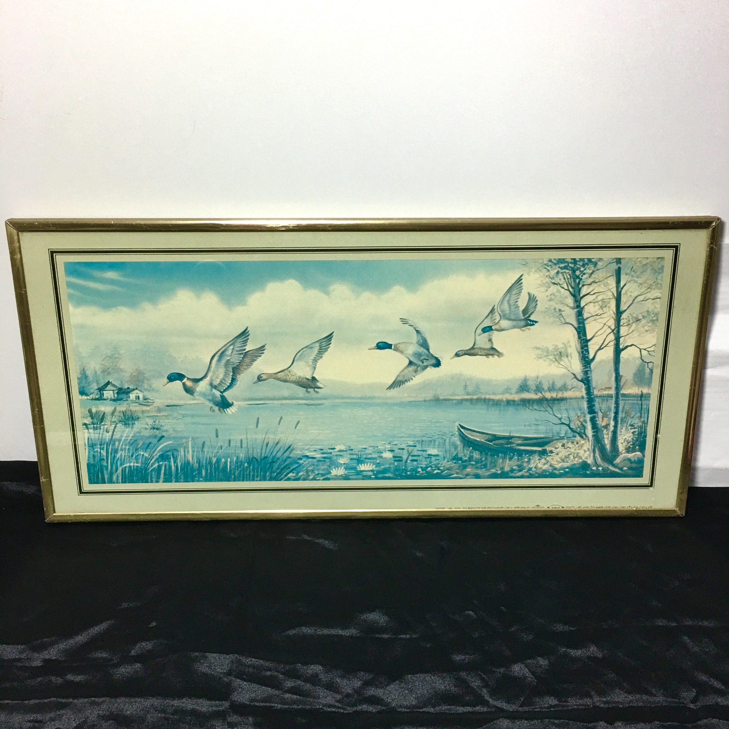 تابلو هنری قدیمی پرواز مرغابی های وحشی