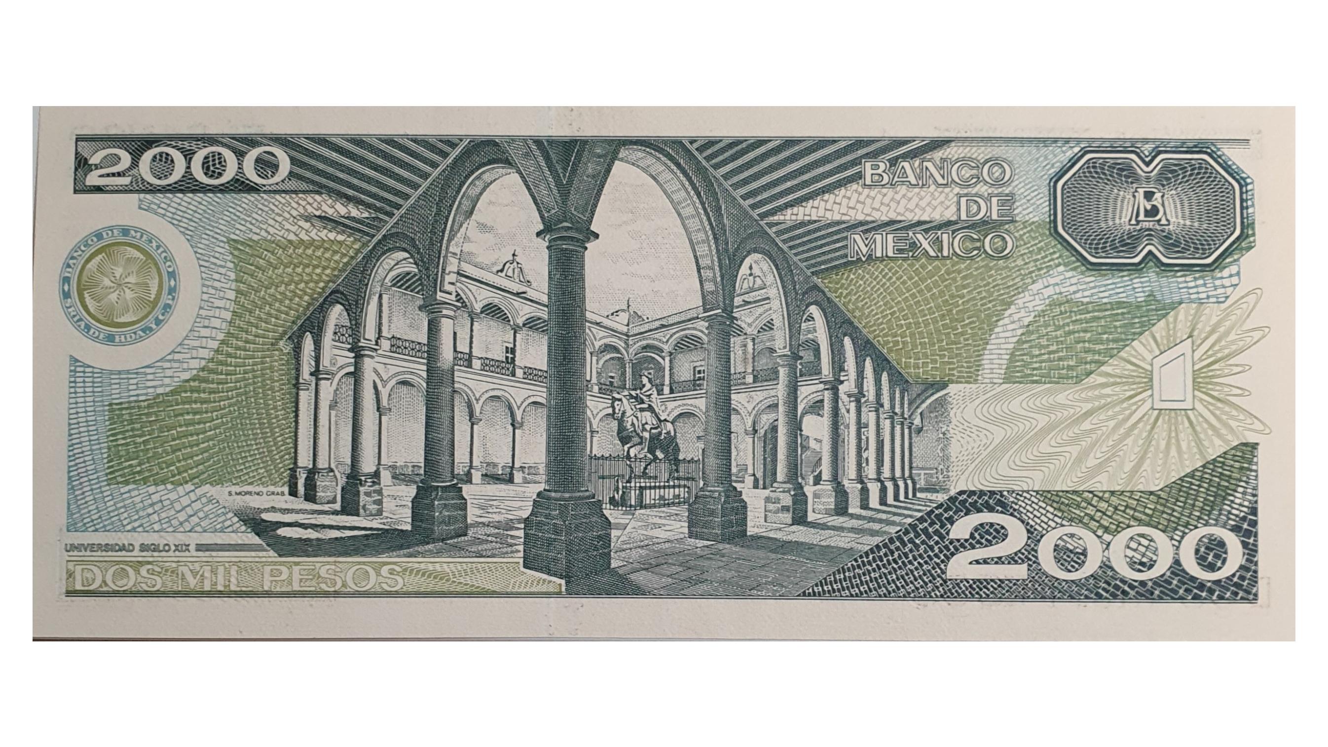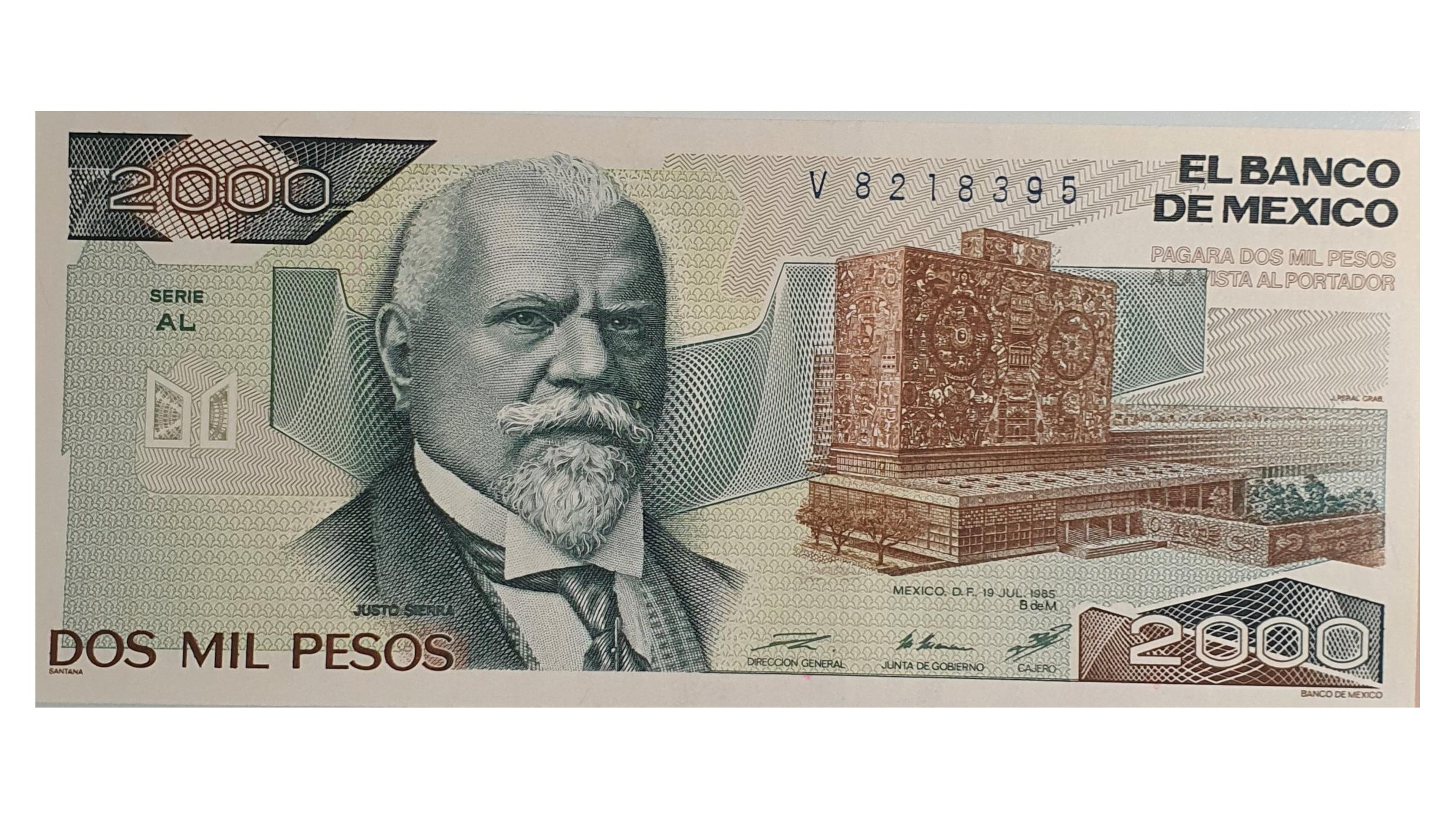 اسکناس 2000 پزو 1985 مکزیک سری AL