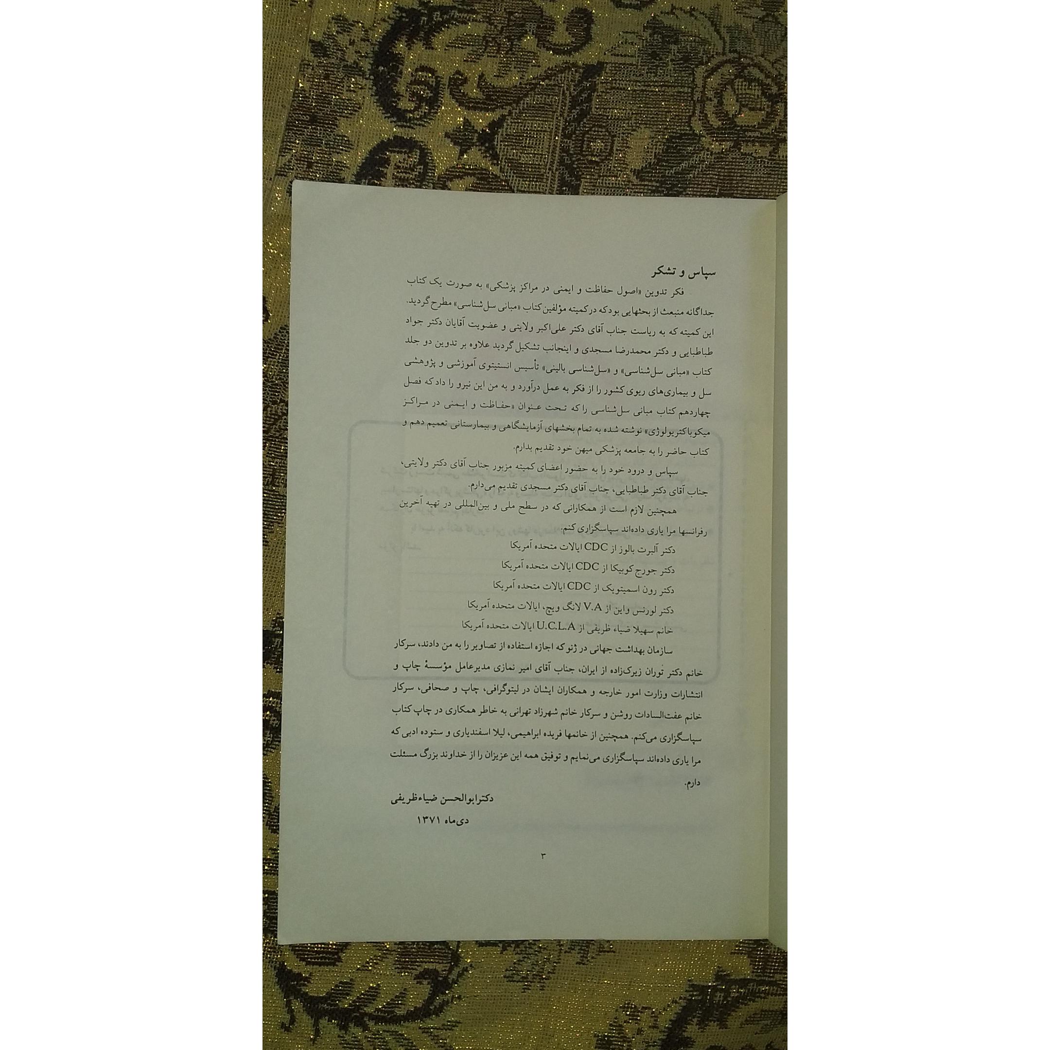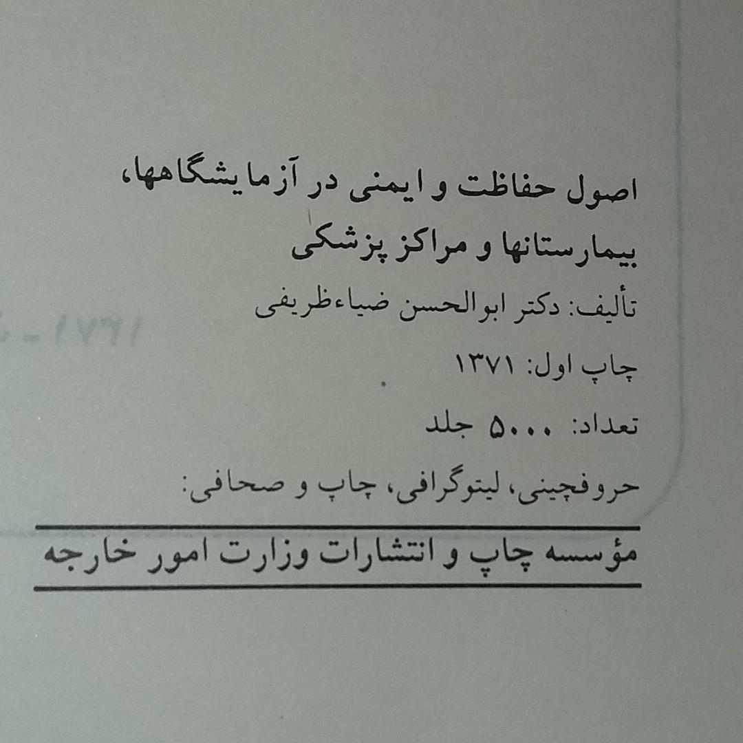 اصول حفاظت و ایمنی در بیمارستانها و مراکز پزشکی نام این کتاب هست