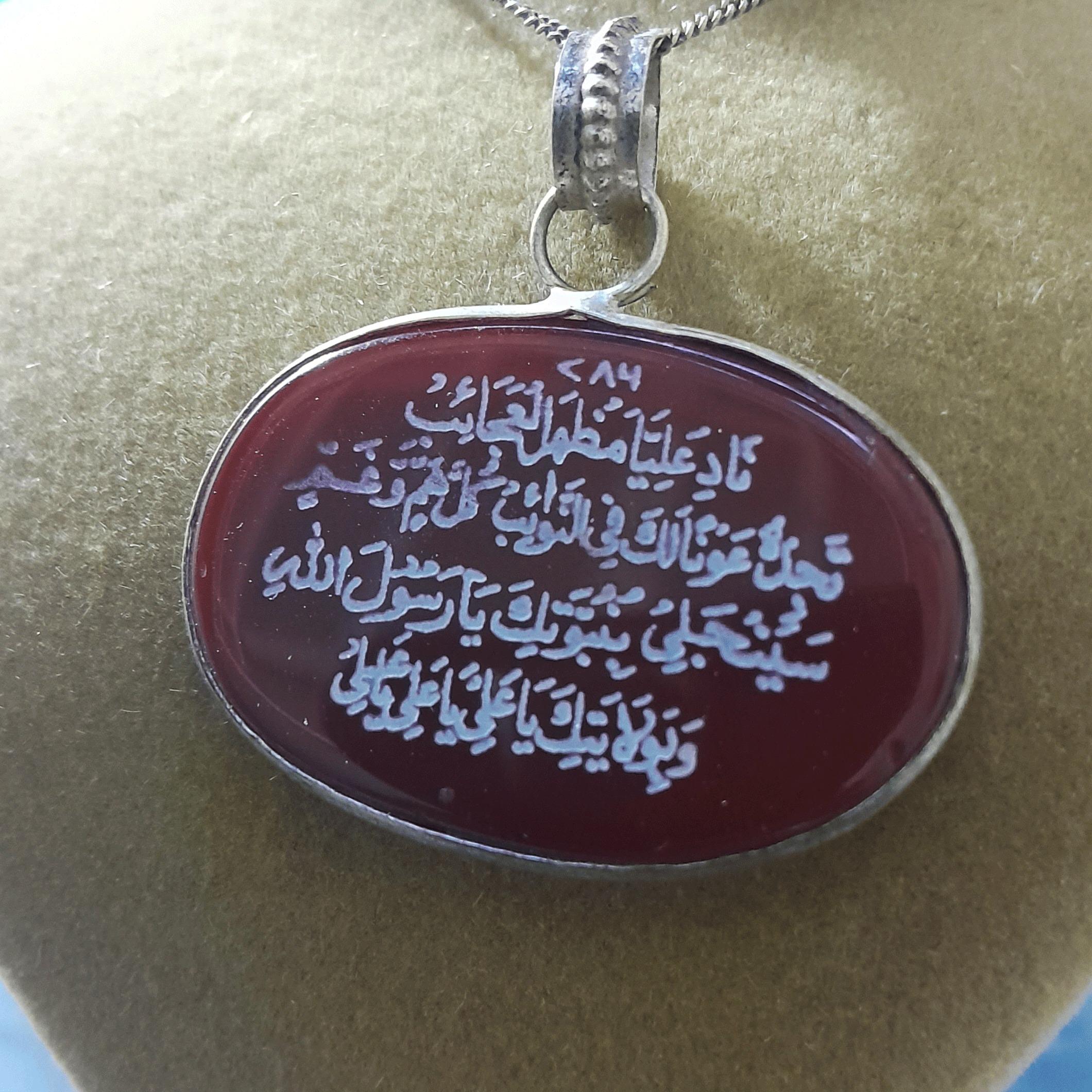 آویز ناد علی پایه نقره عقیق خراسان قدیمی دست خط