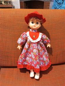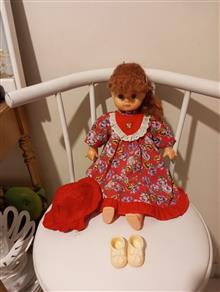 عروسک قدیمی دختر زیبای قرمز پوش
