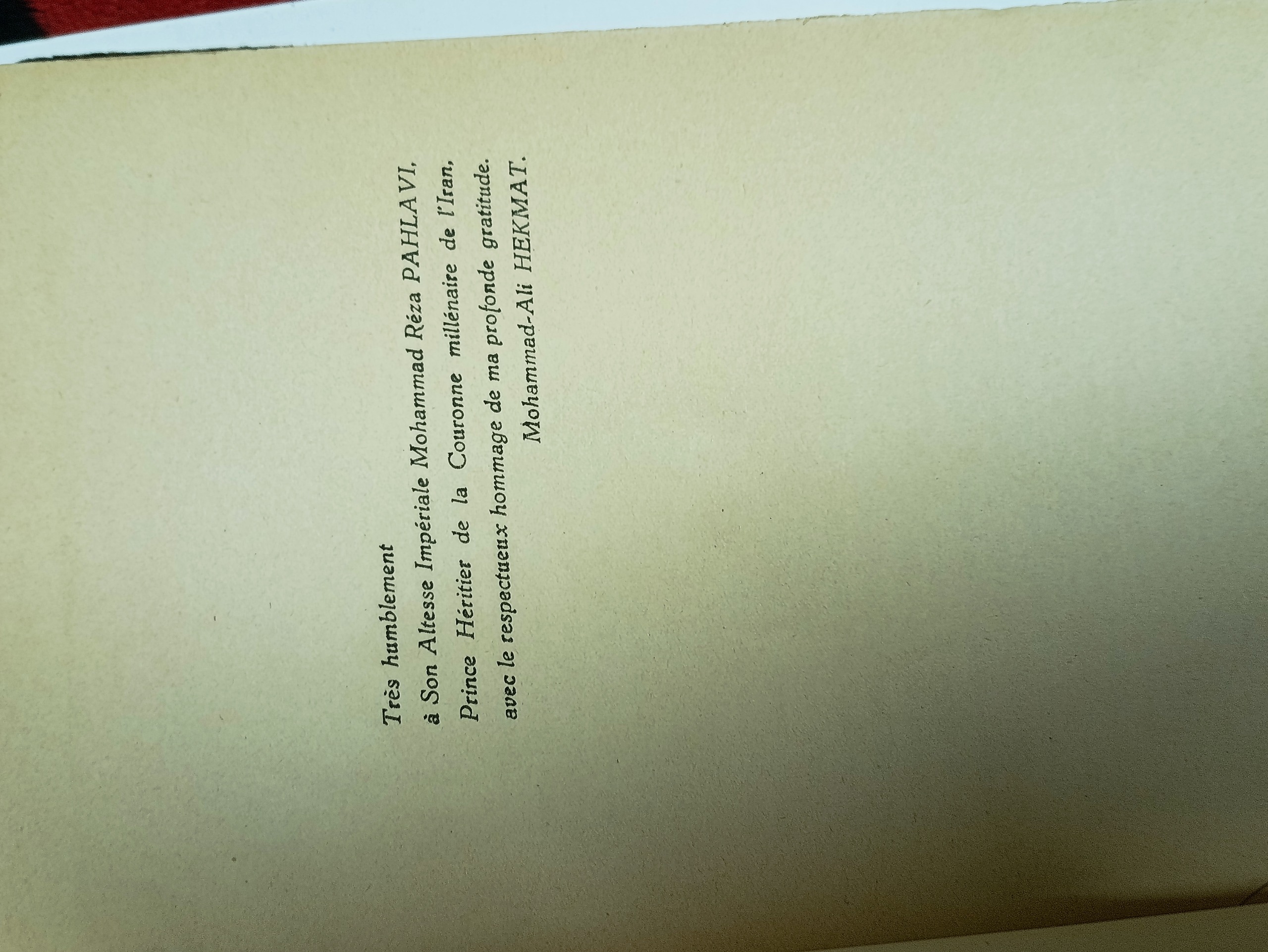 با ارزش و قدیمی میباشند .کتابی فوق العاده نایاب و آنتیک میباشد زبان کتاب فرانسوی میباشد و در ابتدای کتاب تقدیمی به محمد رضا شاه بصورت چاپی موجود میباشد. از نظر کیفیت بسیار عالی نگهداری شده و هیچ گونه عیب و ایرادی در آن نمیباشد . اگر سوالی در رابطه با کتاب
