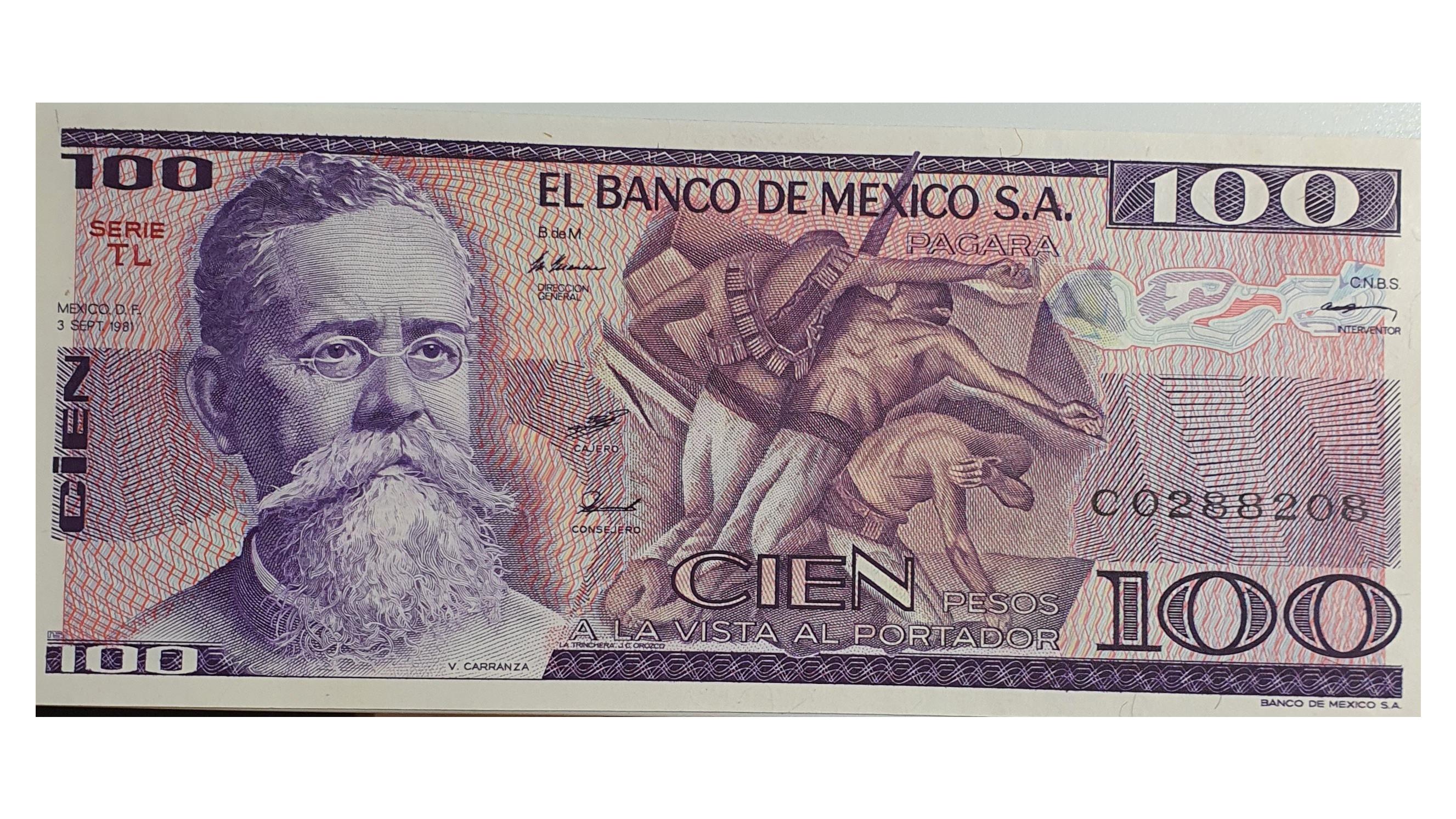 اسکناس 100 پزو 1981 مکزیک سری TL