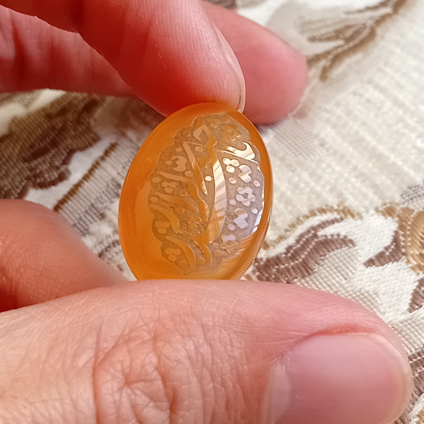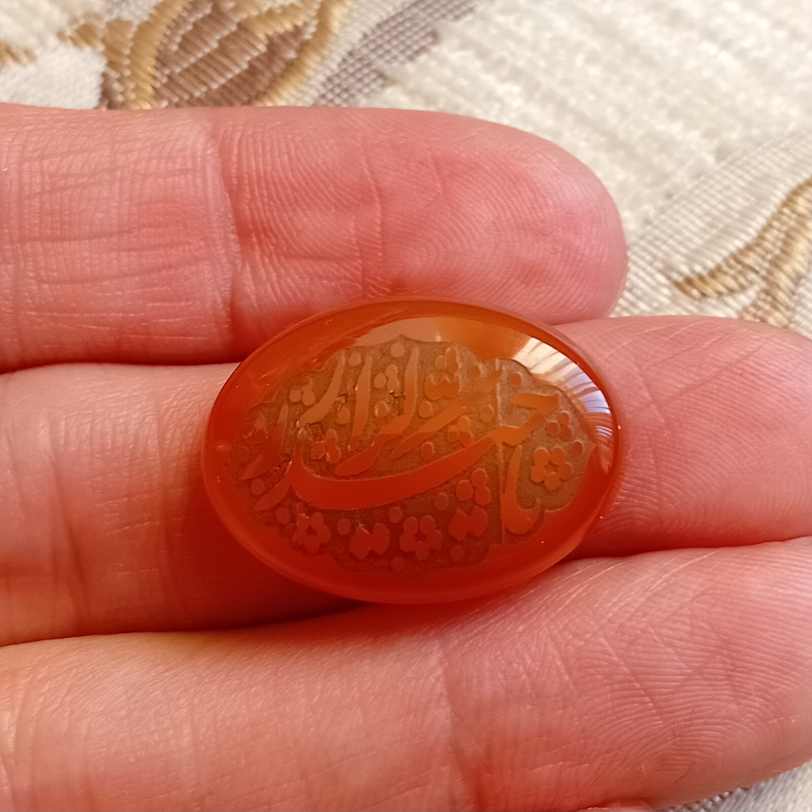 نگین عقیق اصل خطی منقش به ذکر شریف یا حیدر کرار