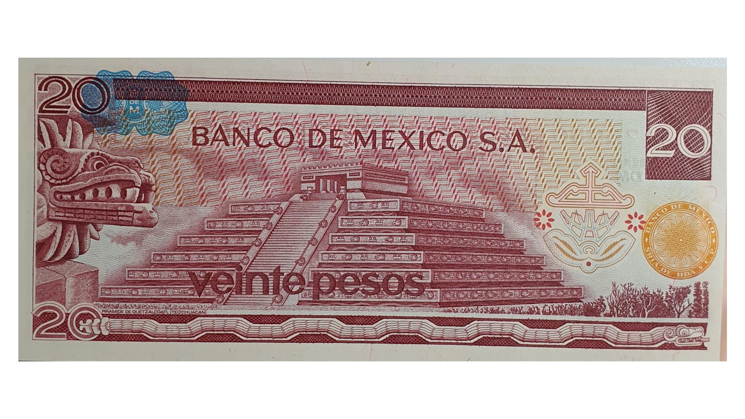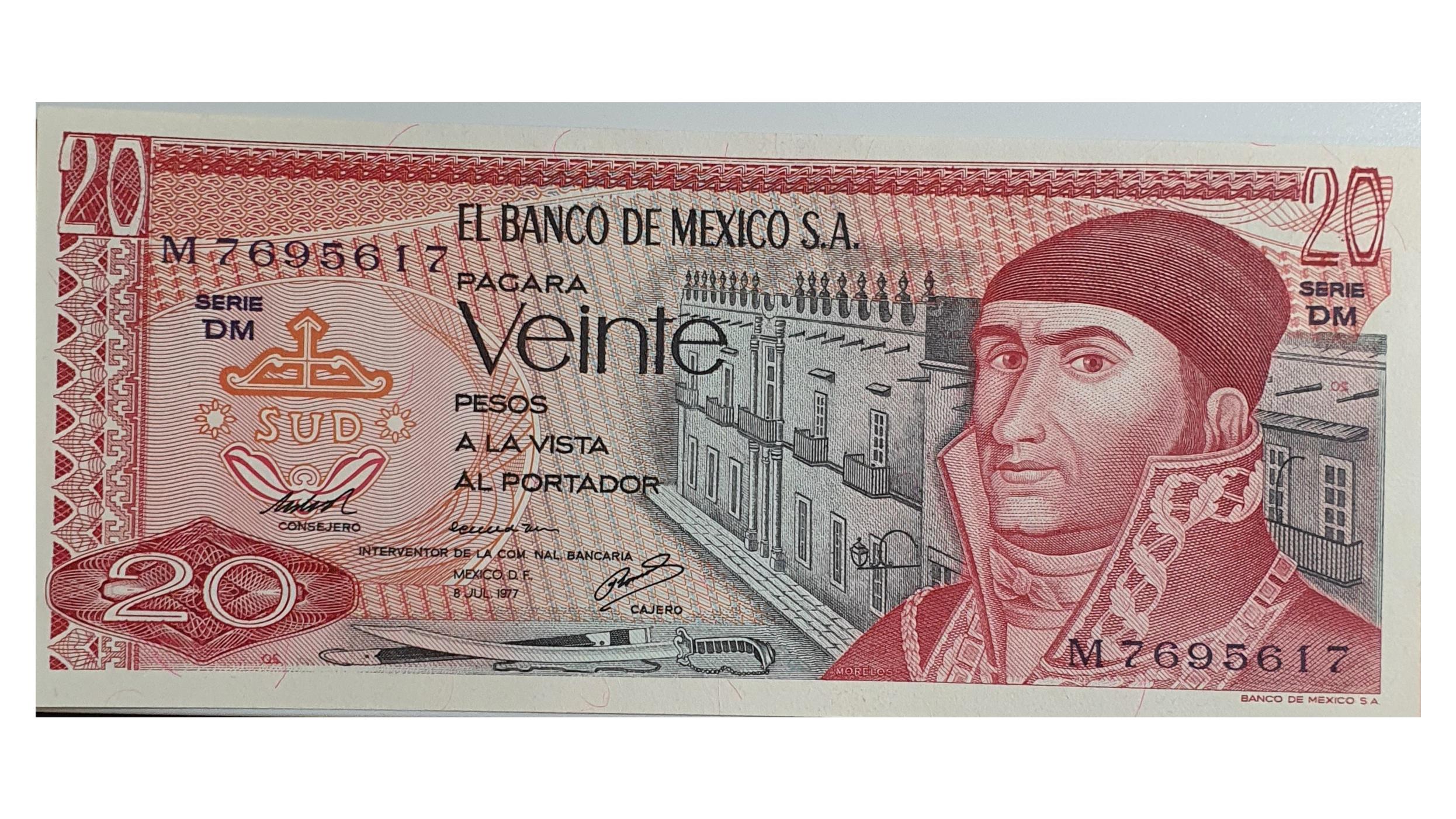 اسکناس 20 پزو 1977 مکزیک سری DM