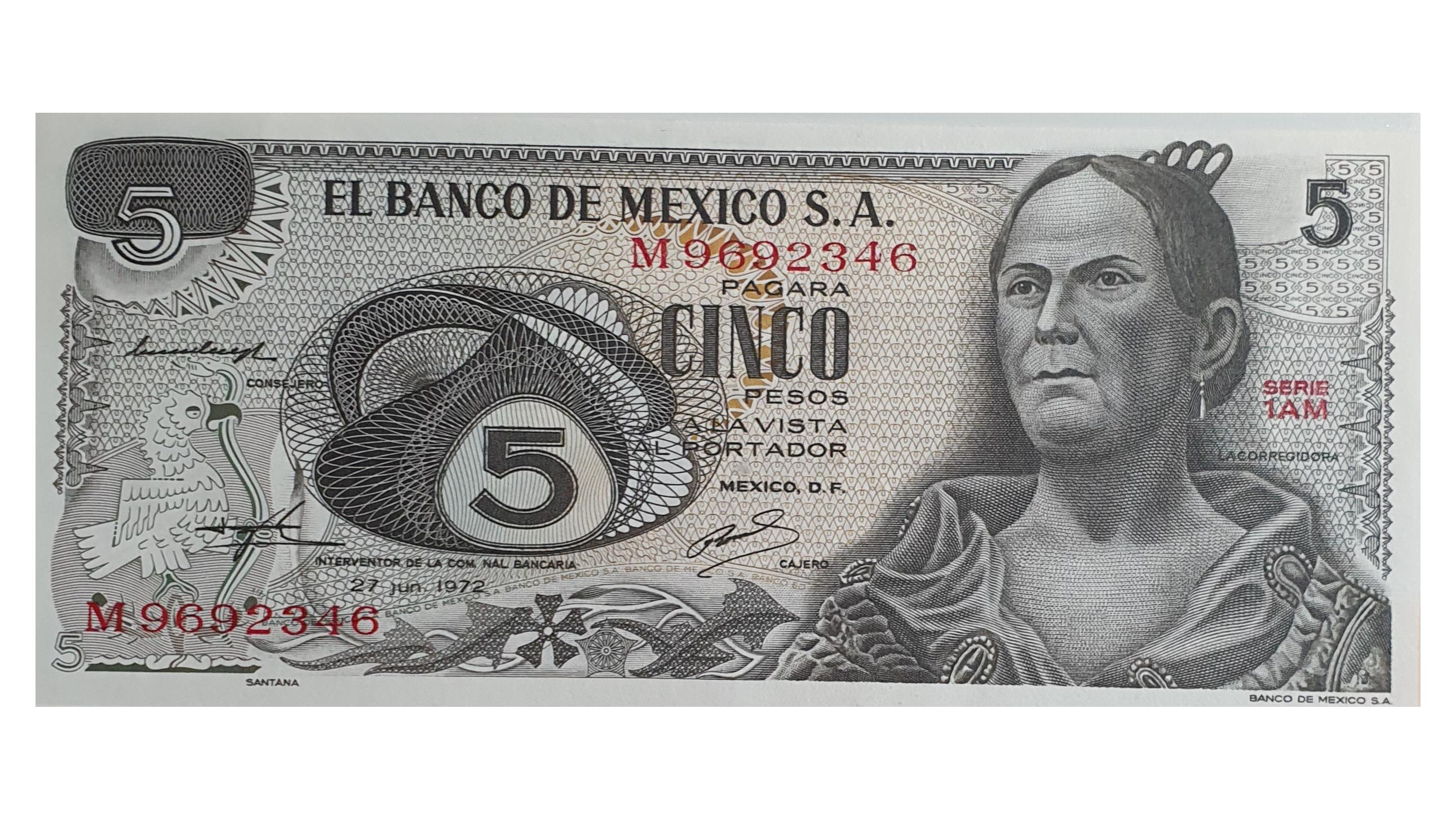اسکناس 5 پزو 1972 مکزیک سری 1AM