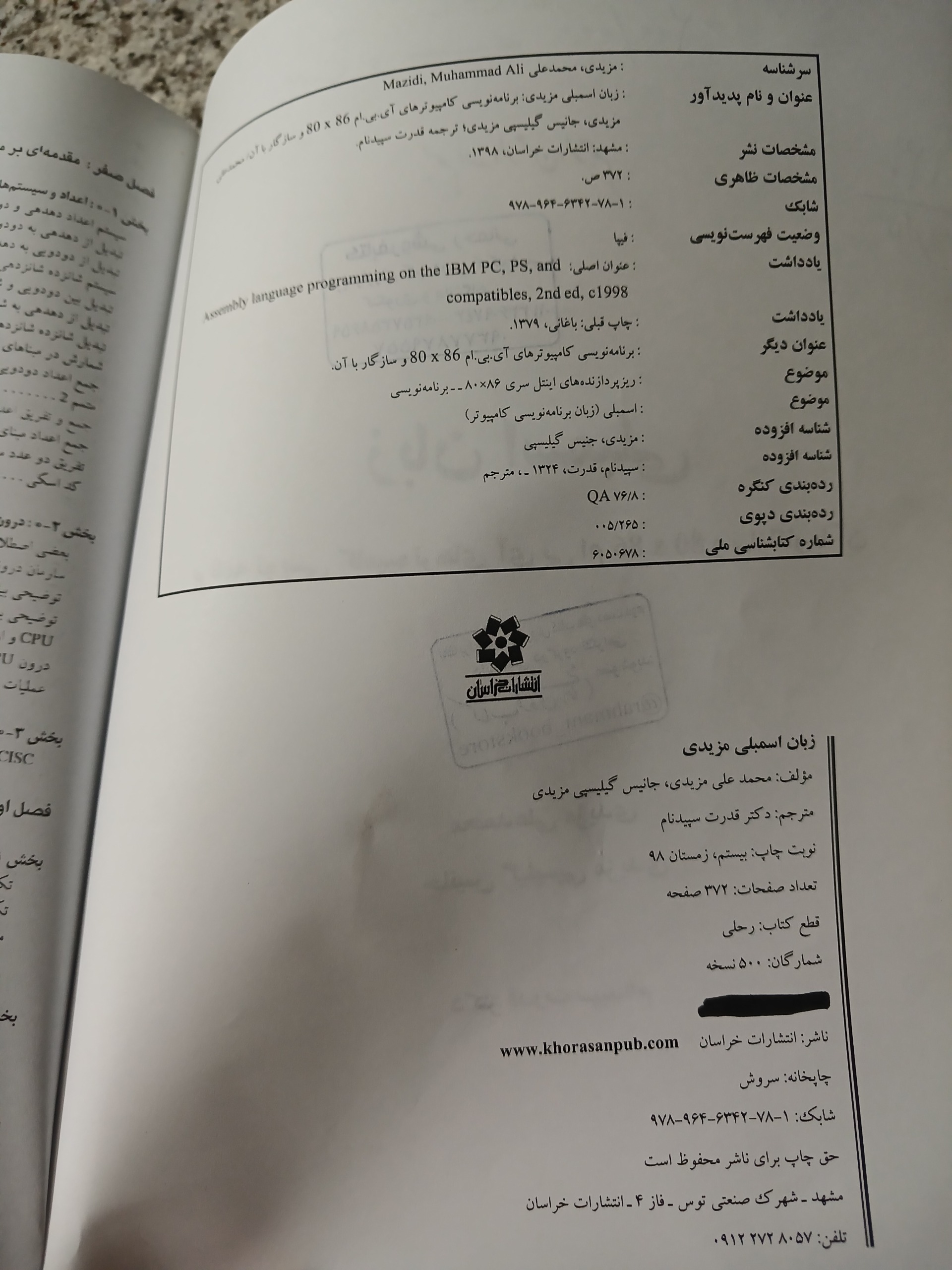| نوع چاپ کتاب | چاپ اصل |