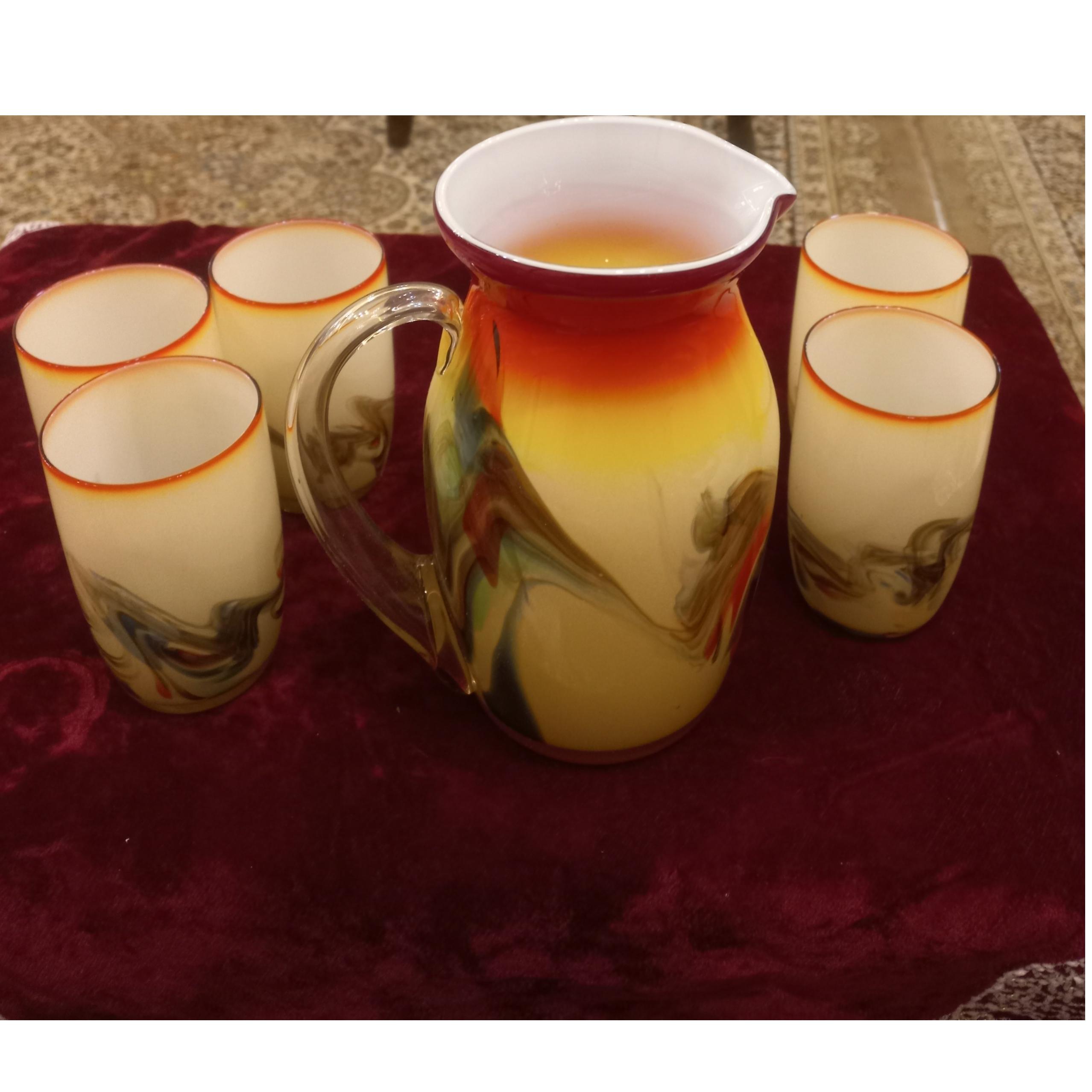 پارچ ولیوان قدیمی معروف به ابروبادی تعداد لیوانها 5عدد است