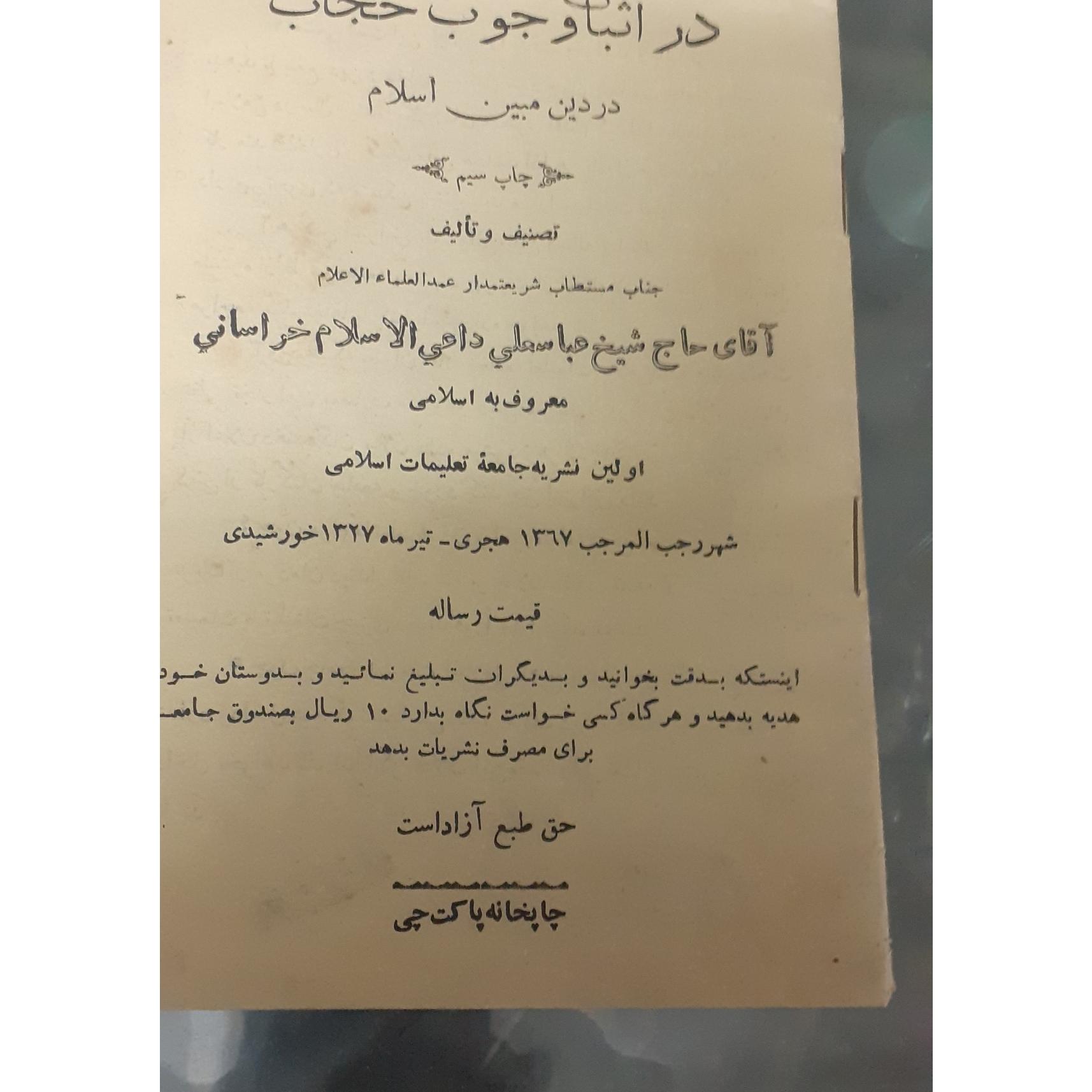 رساله در اثبات وجوب حجاب در دین مبین اسلام