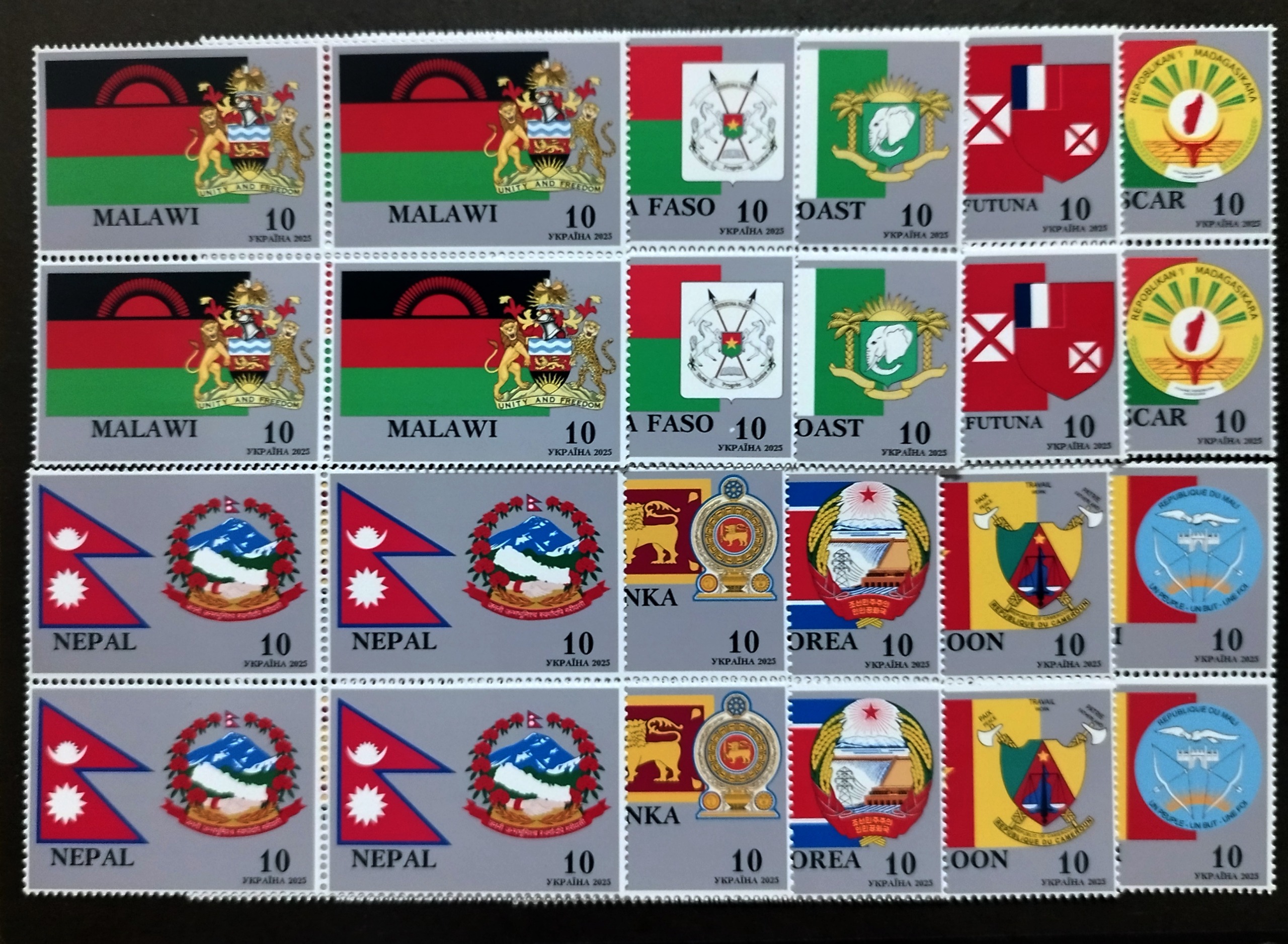 کشورها: *(کره شمالی مالی ماداگاسکار مالاوی بورکینافاسو ساحل عاج جزیره والیس و فوتونا نپال سریلانکا کامرون)*