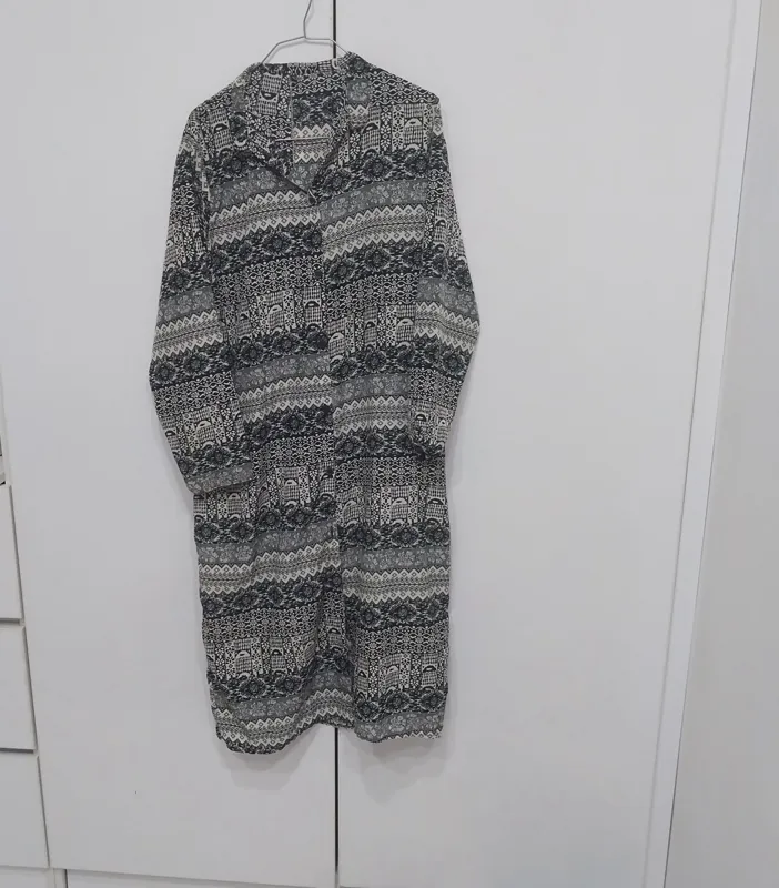 پیراهن مانتویی زنانه جنس کرپ نخ ، رنگ ثابت ، تمام دکمه ، قد از سرشانه 120 عرض سینه 51