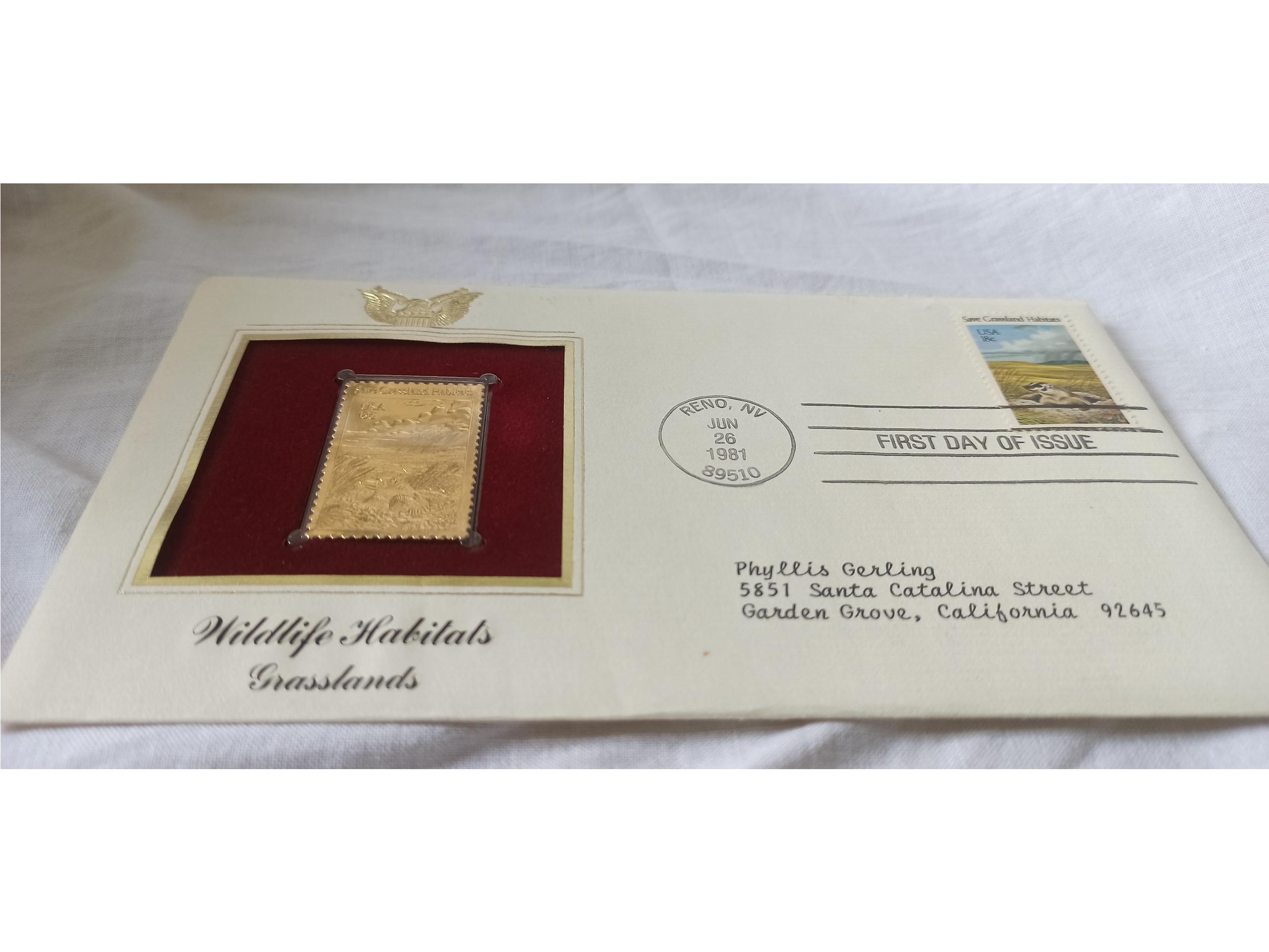 دومی به مناسبت زیستگاههای حیات وحش و مراتع چاپ 1981 حاوی تمبر باطل شده پستی روی پاکت و کارت تمبر روکش طلای داخلی پاکت