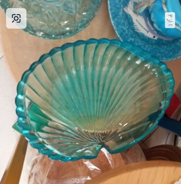 ظرف بلور آبی رنگ ، مناسب پذیرایی و تنقلات مدل صدف ، قطر 17 سانت ،کاملا نو و آکبند، محصول ترکیه