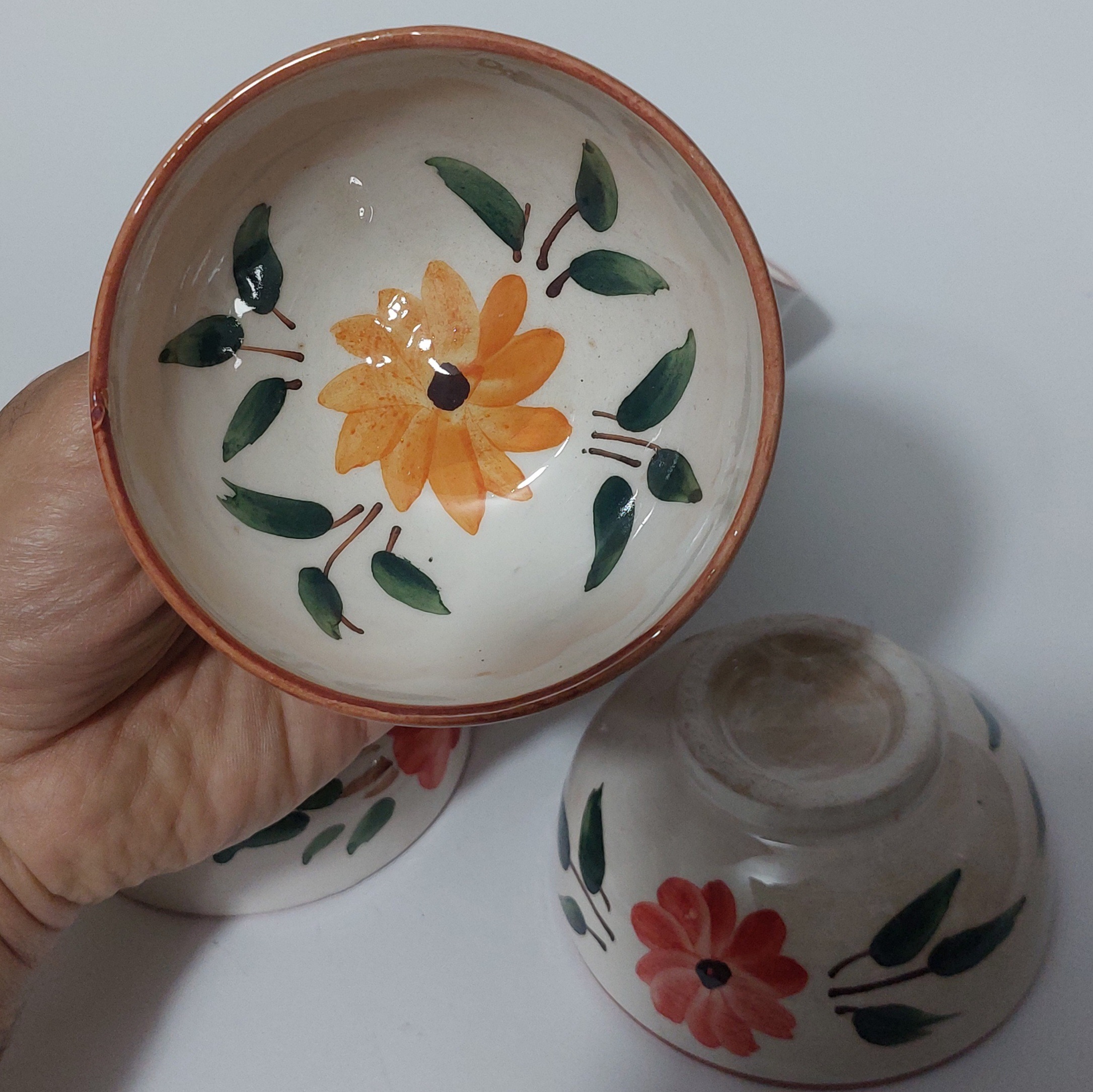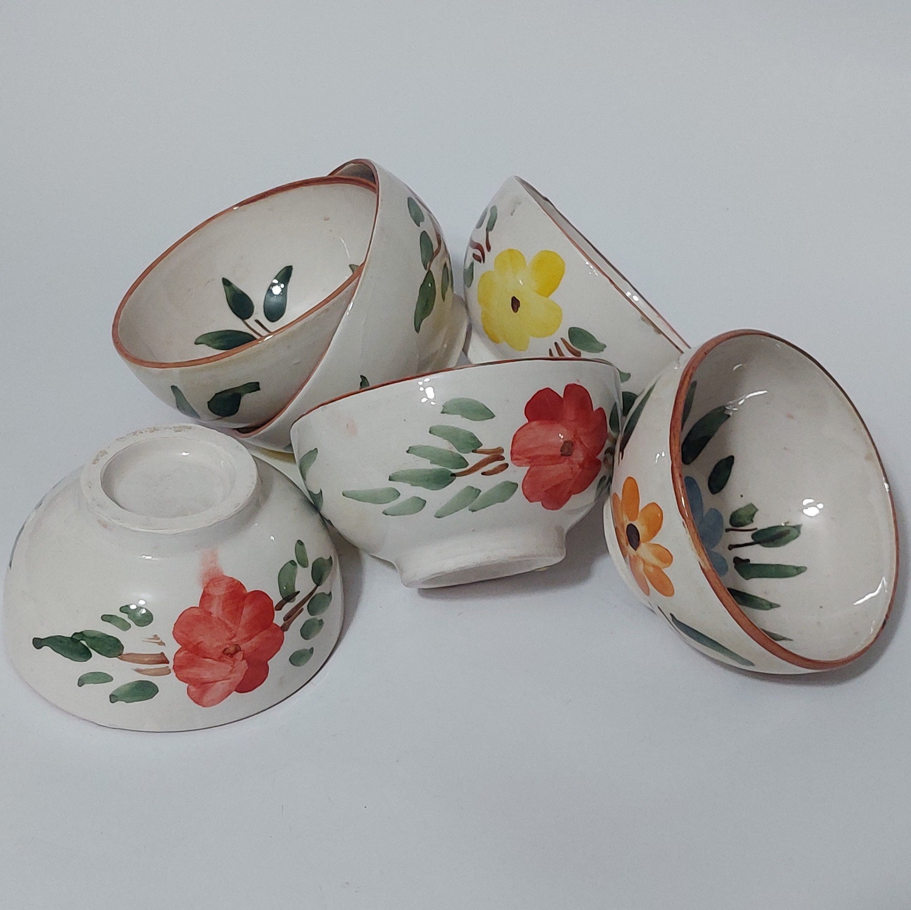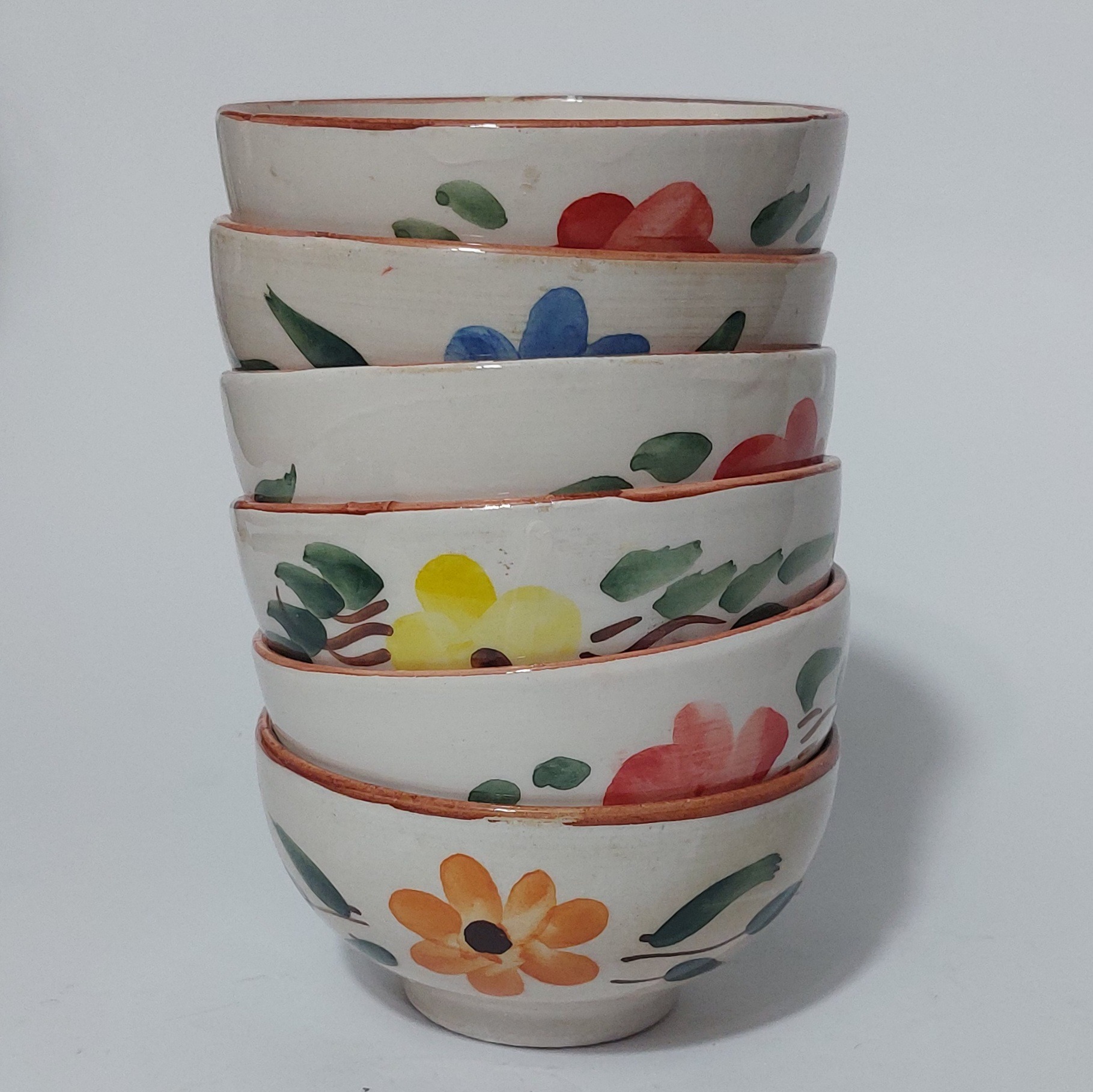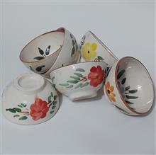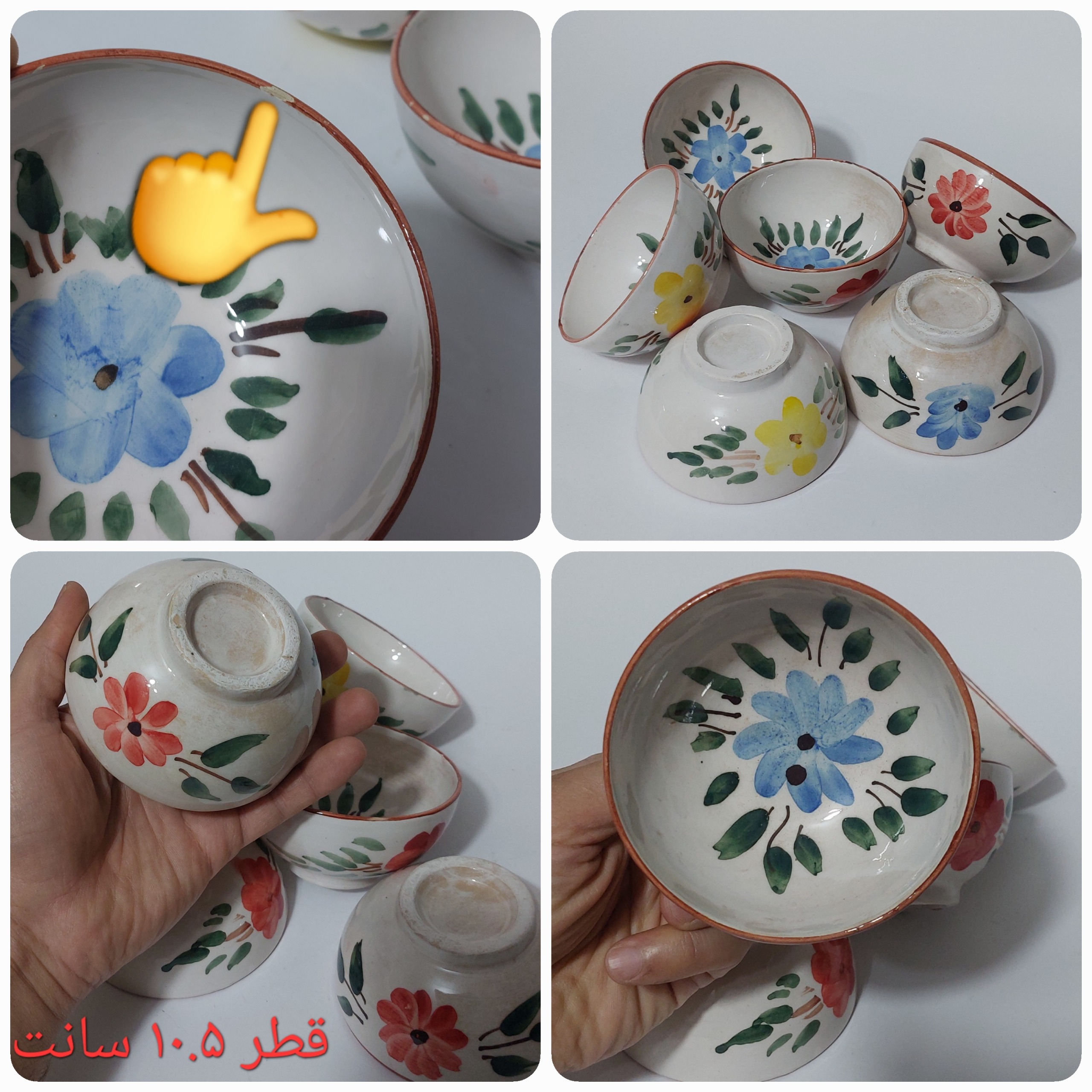 یک دست (شش عدد) پیاله سفالی لعابدار با نقاشی دست