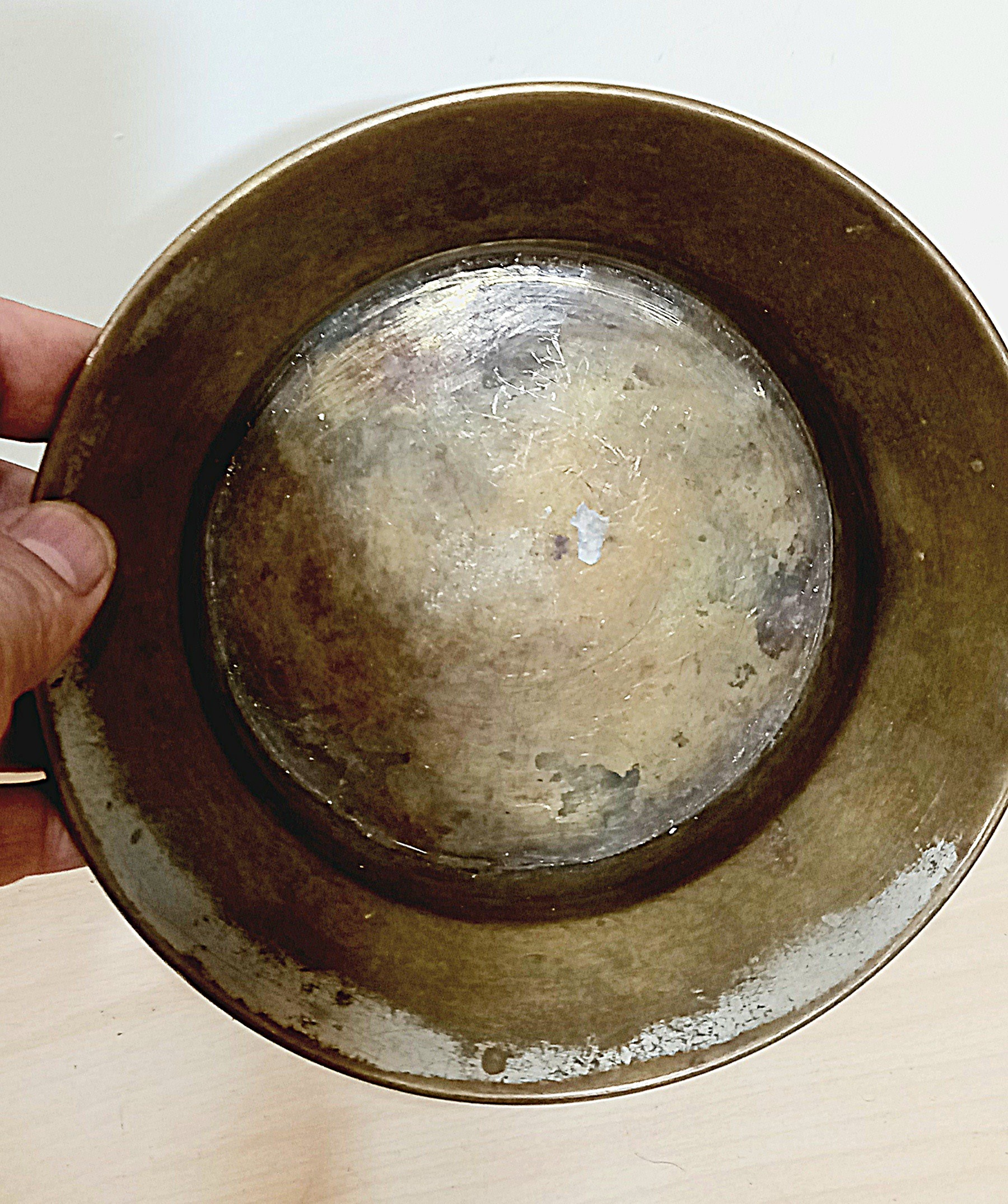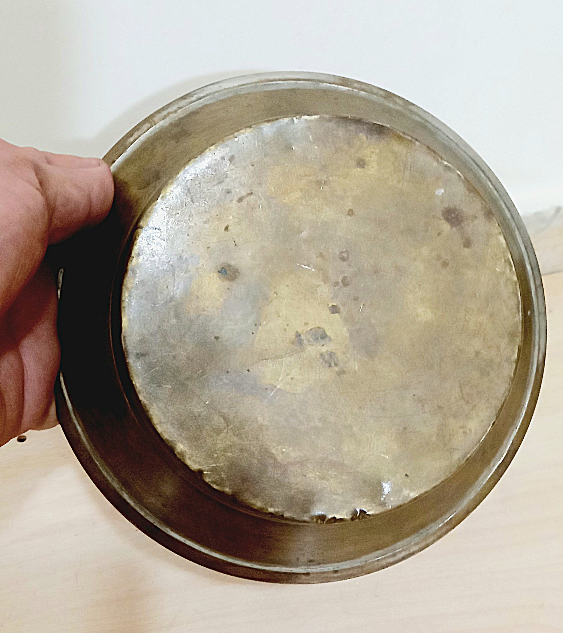 تشت زیر سماور کوچک برنجی قدیمی دقیقا مطابق تصاویر تویی از تصاویر نشون دادم بعلت قدمت بالا از بغل زیره اش یه مقدار ترک مانند داره و تو تصویر مشخصه