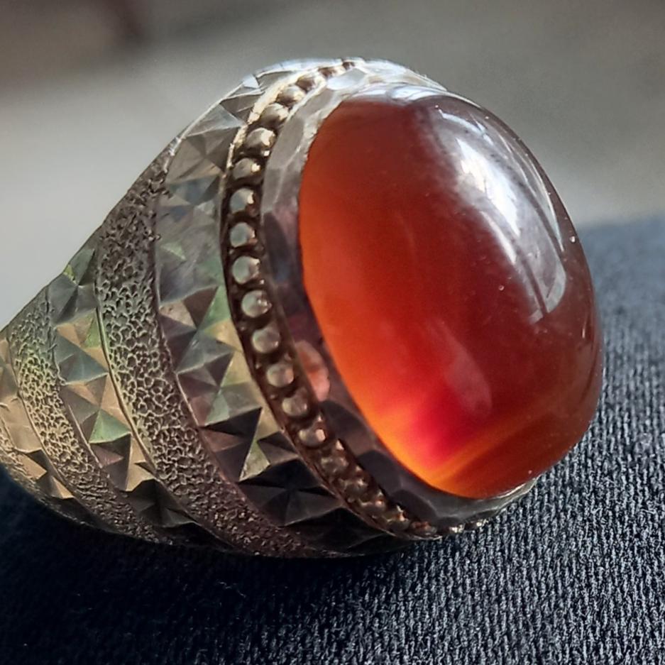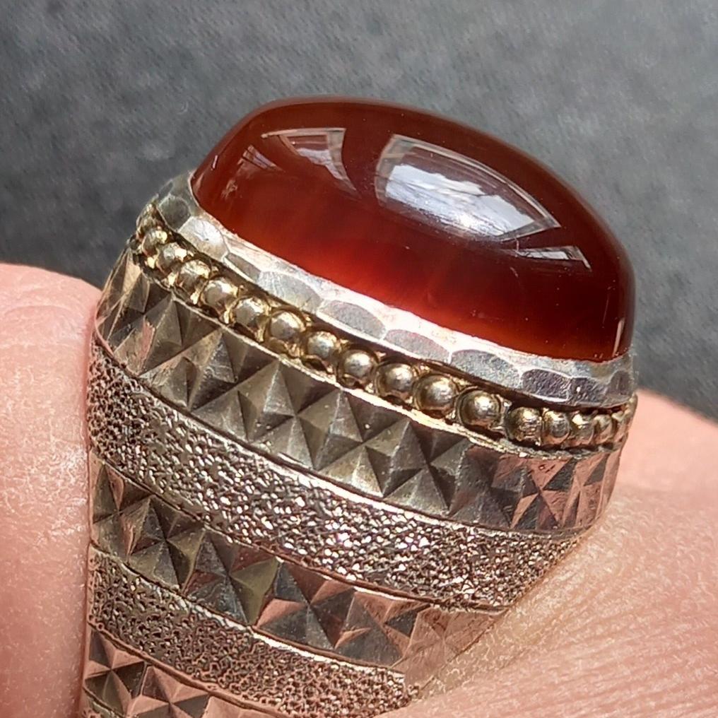 عقیق طبیعی آبدار با رکاب آینه کاری استاد سروش