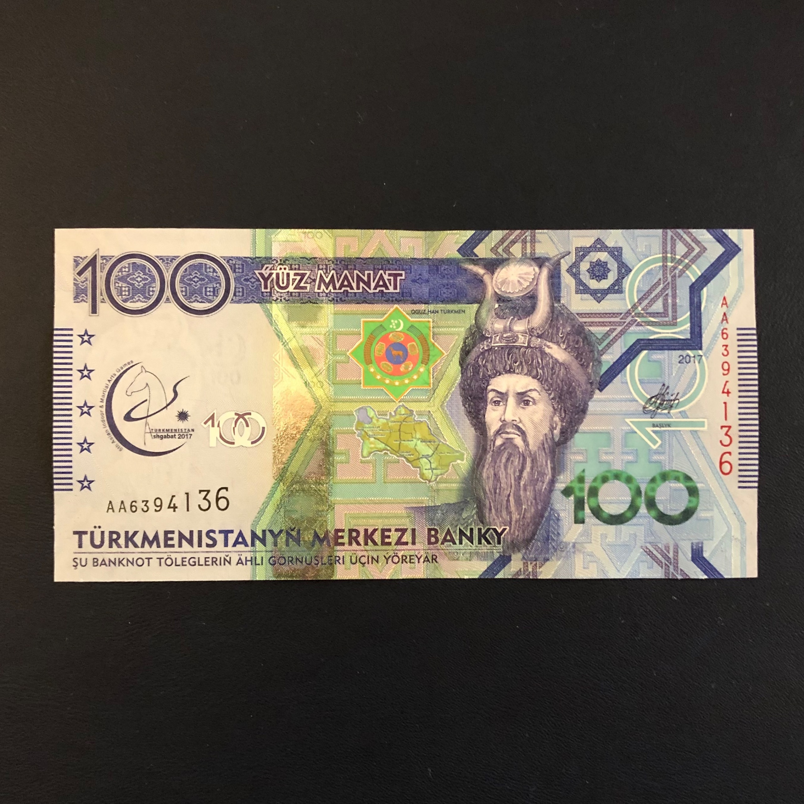 اسکناس تک بانکی 100 منات ترکمنستان شماره متفاوت
