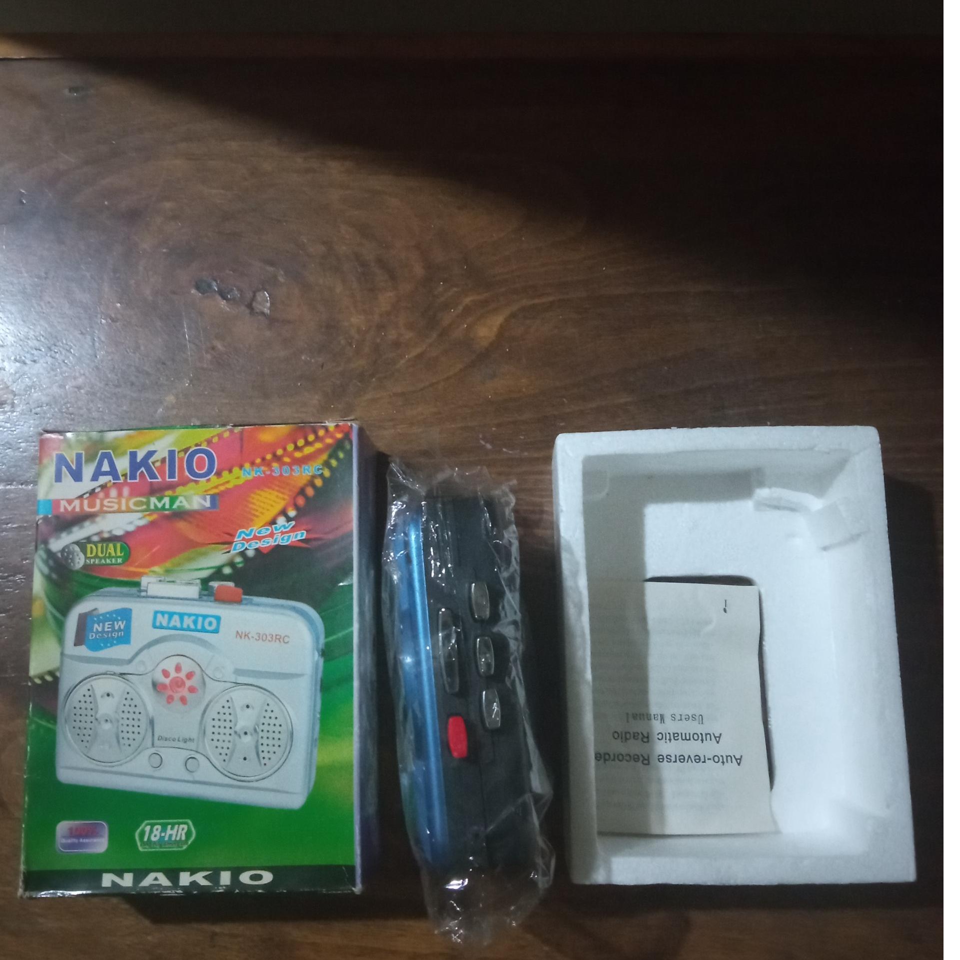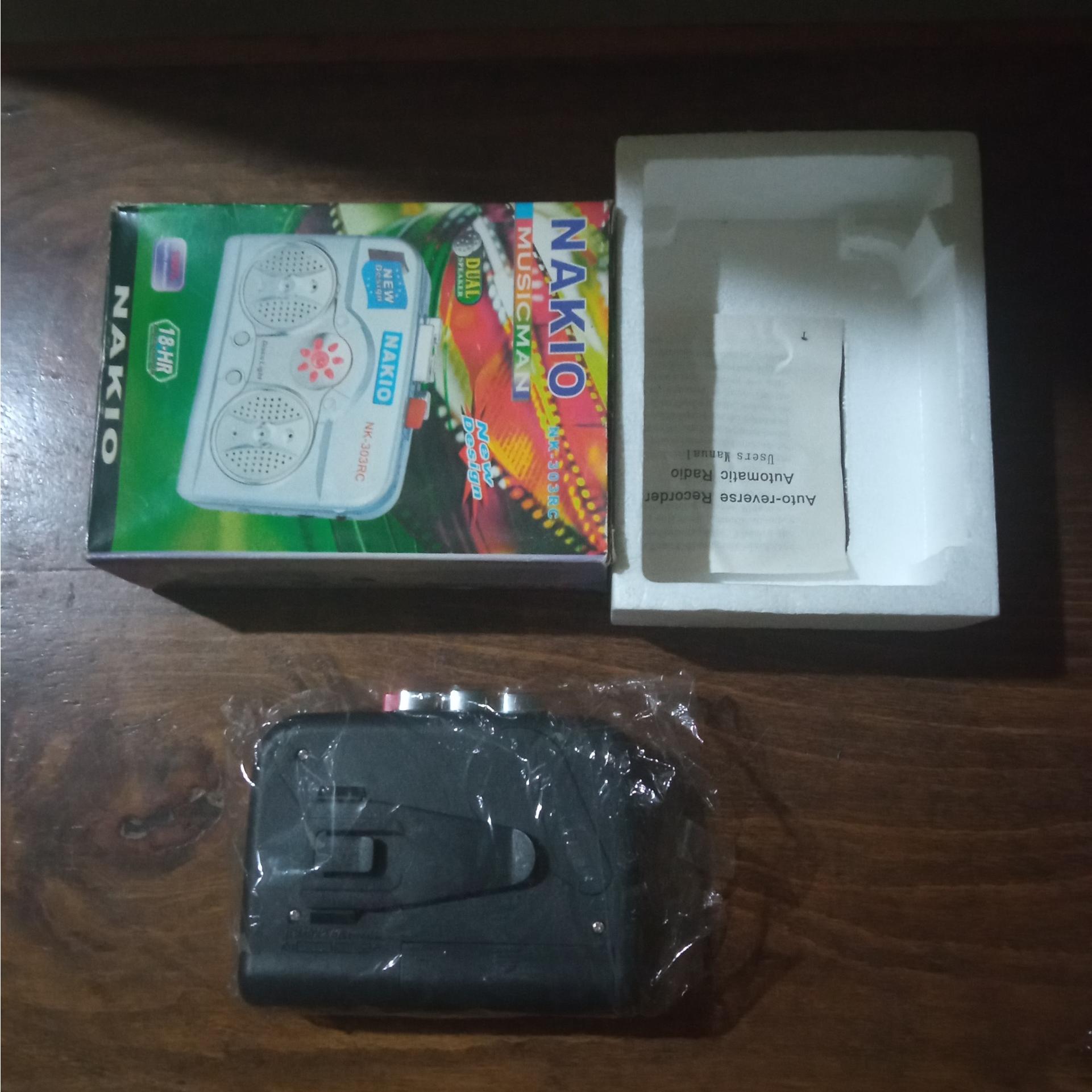 واکمن آکبند، نوار کاست. متاسفانه در اثر موندن در انبار تسمه پوسیده شده و کاست راحت کار نمیکنه.. جای وصل گوشی هندز فری دارد ولی کلاً از اول هیچ گوشی در جعبه نبوده است. بلندگو سر خود دارد. با دو عدد باتری قلمی کار میکند و جای وصل آدابتور نیز دارد. کالا مطابق تصویر.