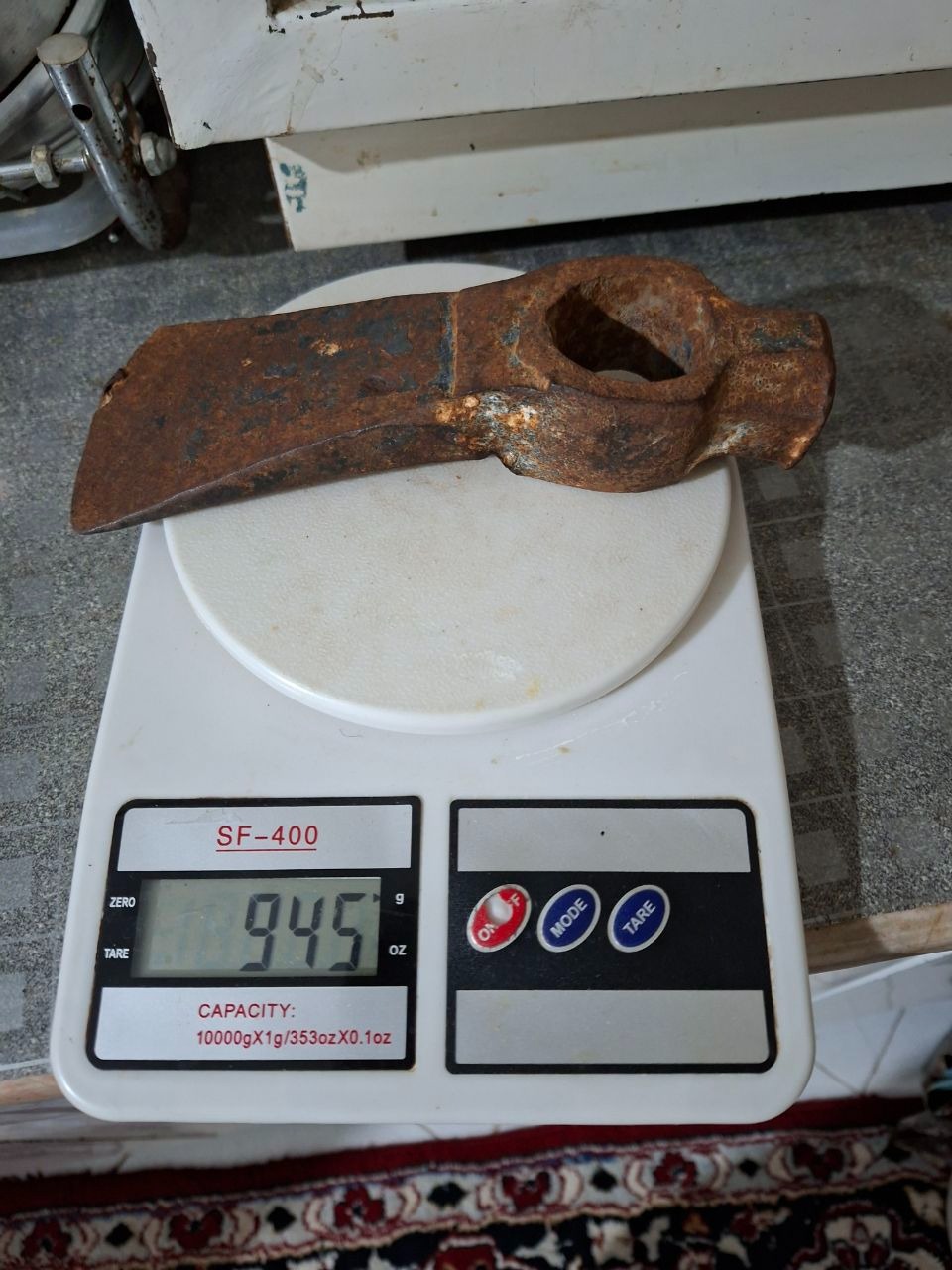همانطور که در تصویر مشخص است گوشه تبر مقداری زدگی دارد و احتیاج به سماده کاری دارد وزن تبر حدود 945 گرم