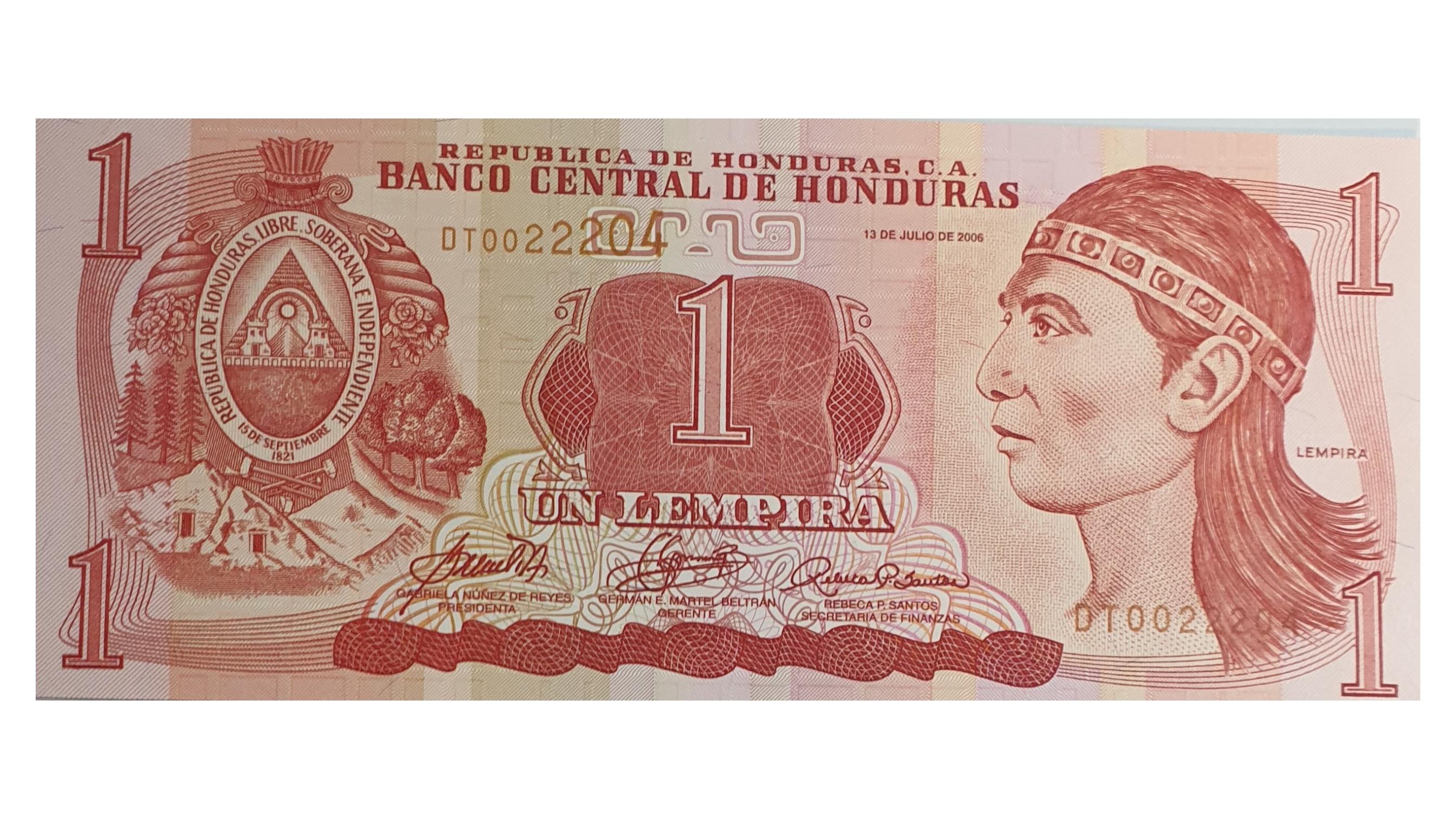 اسکناس یک لمپیرا 2006 هندوراس بدون نوار عمودی