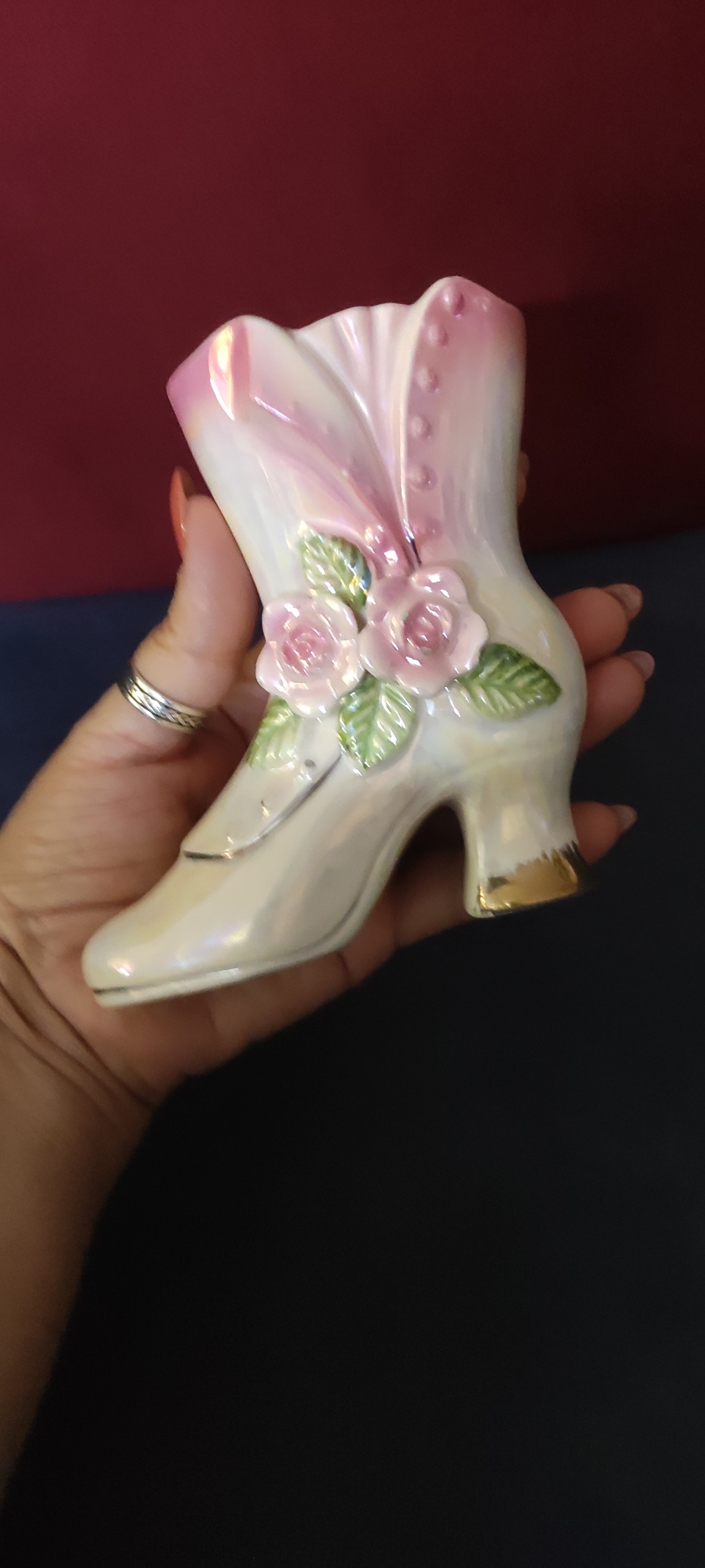 دکوری کفش و یا چکمه چینی آنتیک قدیمی و کلکسیونی سایز بزرگ و طرح خاص