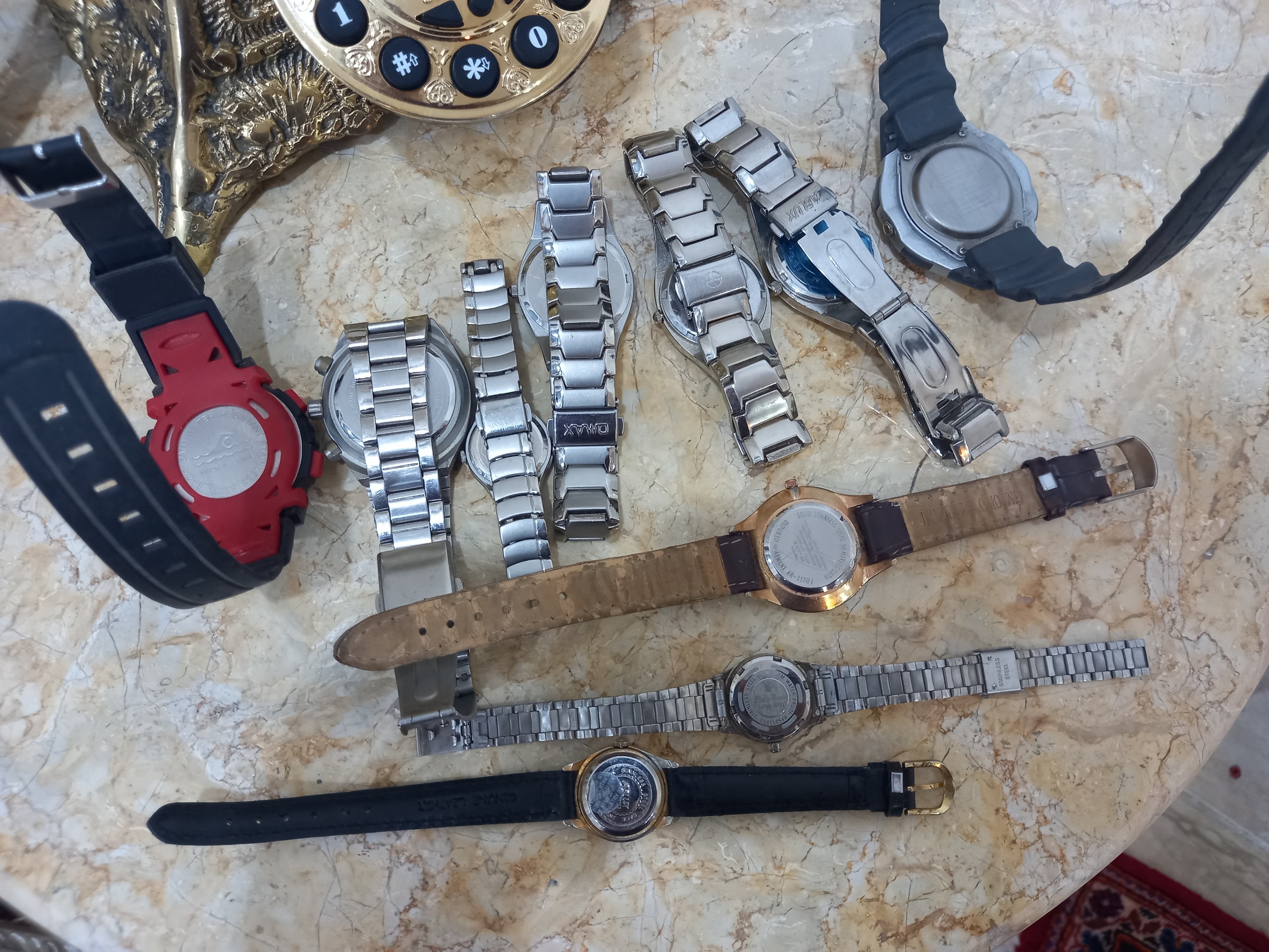 تعداد 10 عدد ساعتهای قدیمی اصل وغیر اصل وبیشترش کار میکنه اینو گفتم تا بعدا حرفی نباشه لطفا در خریدتان دقت فرمایید مرجوعی نداریم