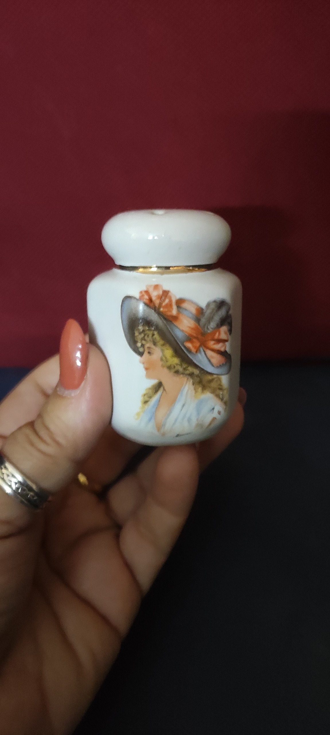 نمکدان چینی قدیمی طرح رخ دختر بسیار کمیاب کلکسیونی و آنتیک