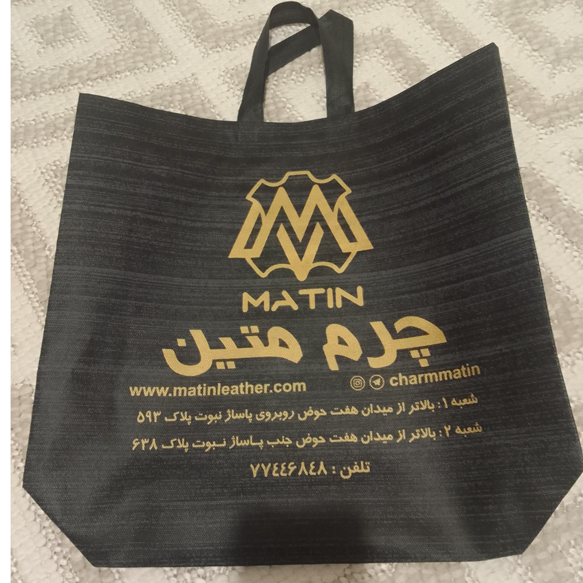 ساک دستی پارچه ای برزنتی مشکی طلایی تبلیغاتی ابعاد 36ونیم در 54 ونیم کیف کیسه خرید نان