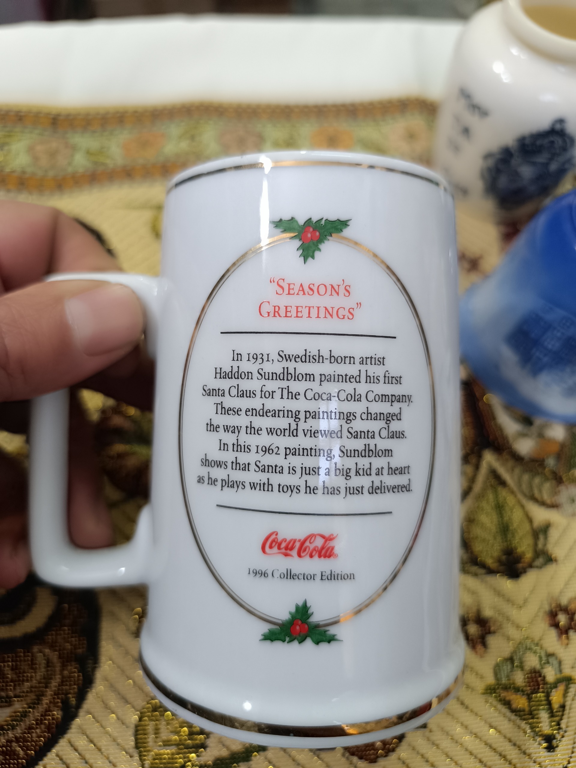 یک عدد ماگ تبلیغاتی شرکت کوکاکولا به مناسبت کریسمس مربوط به سال 1996 ، به سفارش آمریکا ساخت چین ، جنس چینی ، کیفیت و ابعاد مطابق تصویر