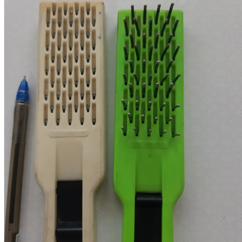 نوستالژی.با فشار دادن دکمه به سمت بالا دنده های برس بیرون میاد.2 رنگ موجود دارم.استفاده نشده اند فقط بدلیل ماندگاری در انبار خط و خش برداشته اند.