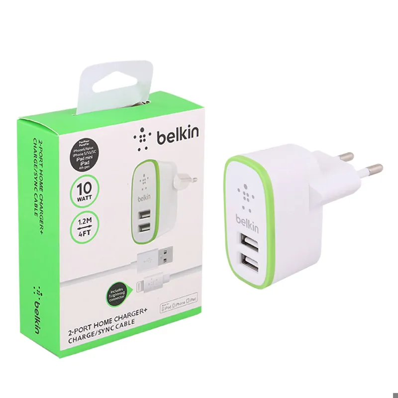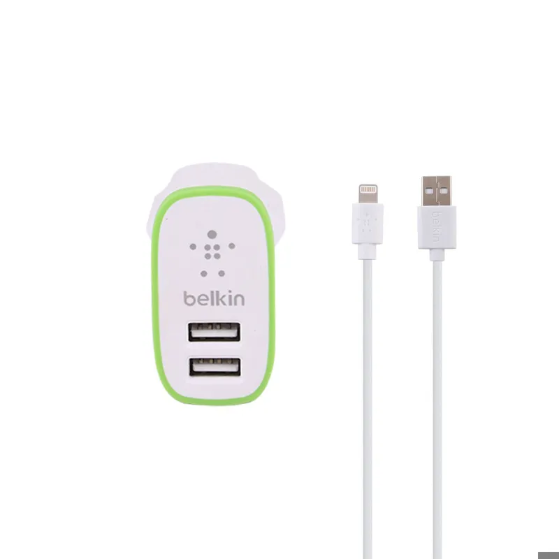 شارژر دیواری 2 پورت belkin بهمراه کابل آیفون