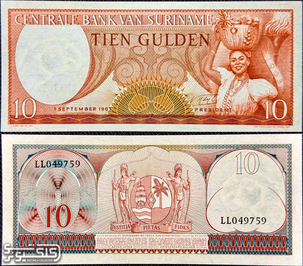 اسکناس 10 گیلدن سورینام 1963