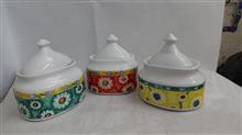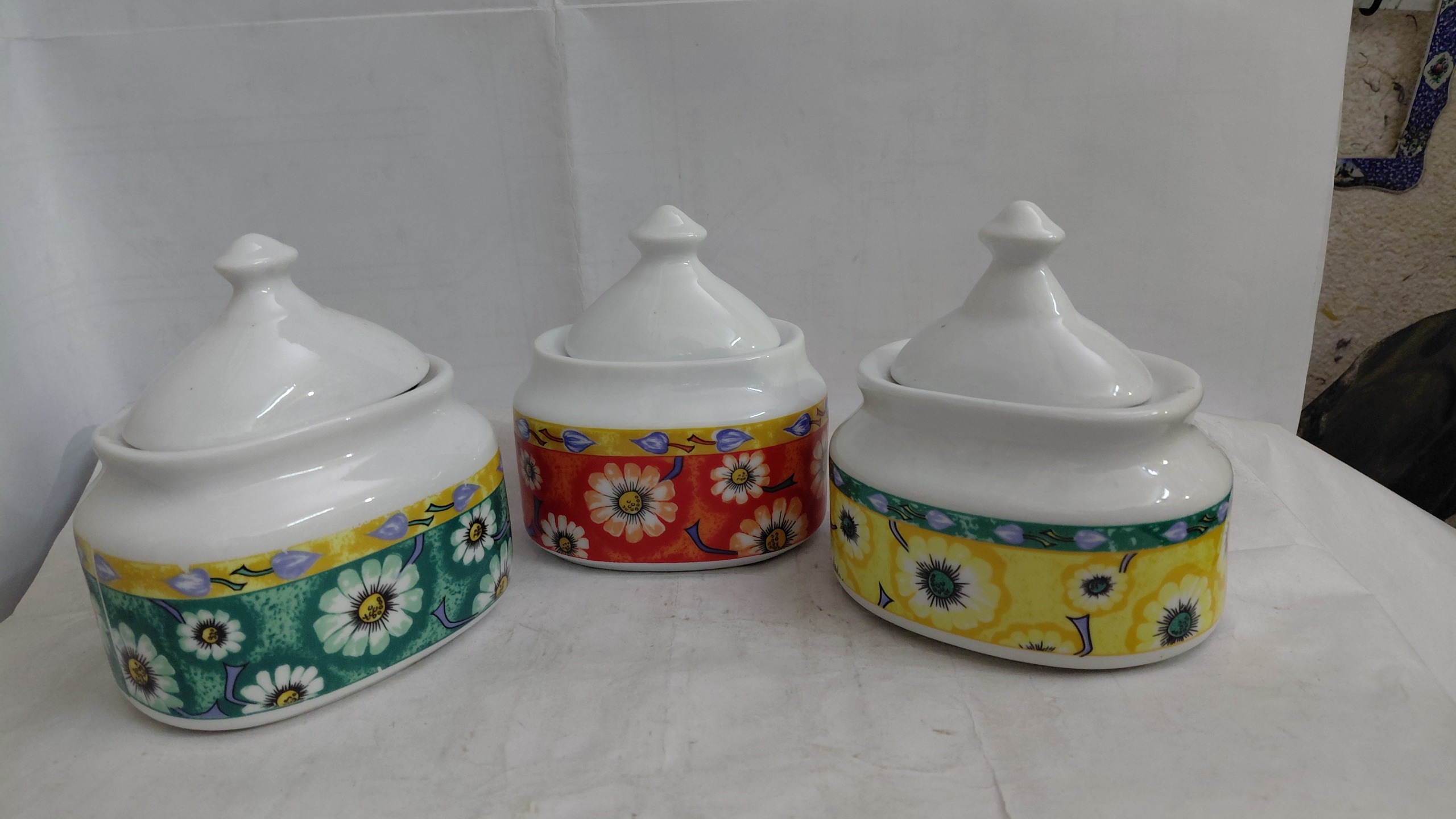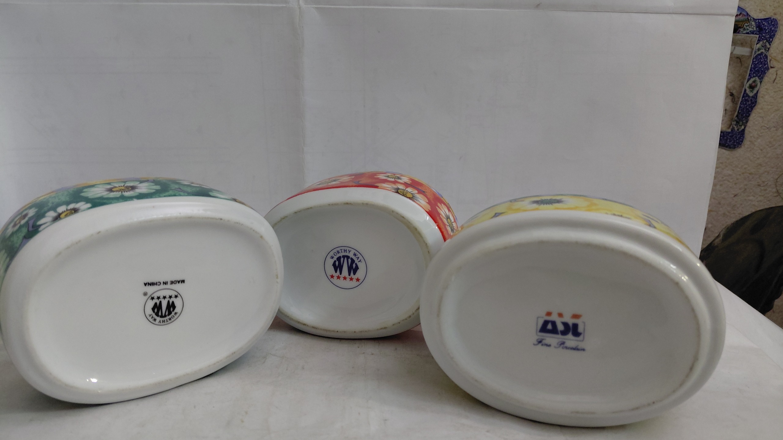 تعداد 3 عدد قندان چینی با رنگ گلهای متفاوت.ابعاد 9×12 سانت.