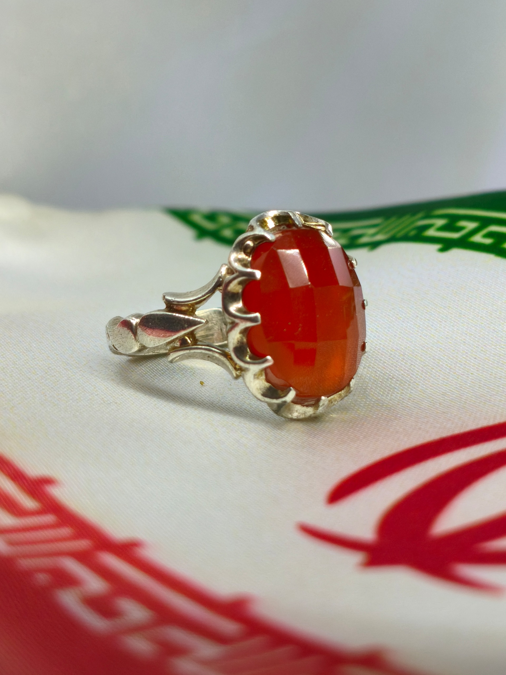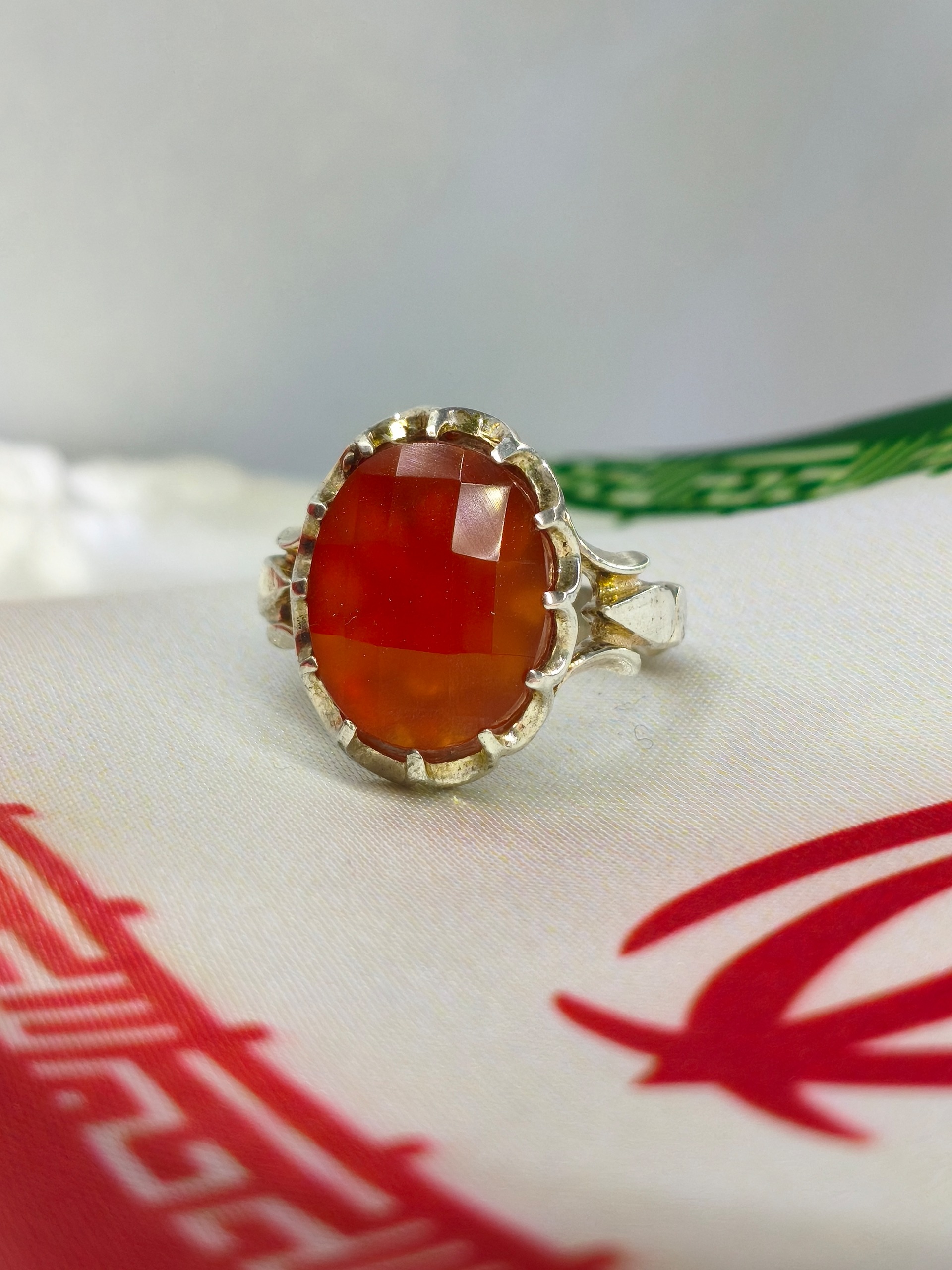انگشتر نقره با نگین عقیق یمنی تراش فنسی