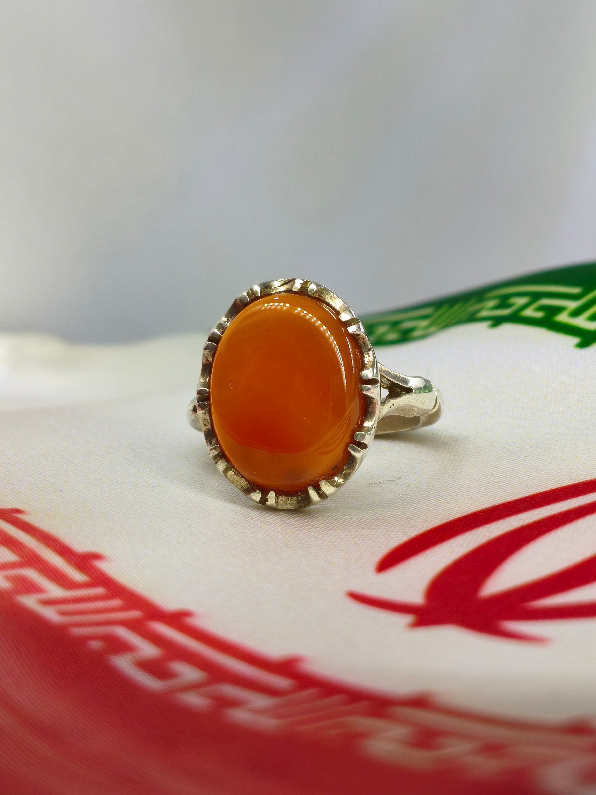 انگشتر نقره عیار بالا با نگین عقیق یمنی اصل