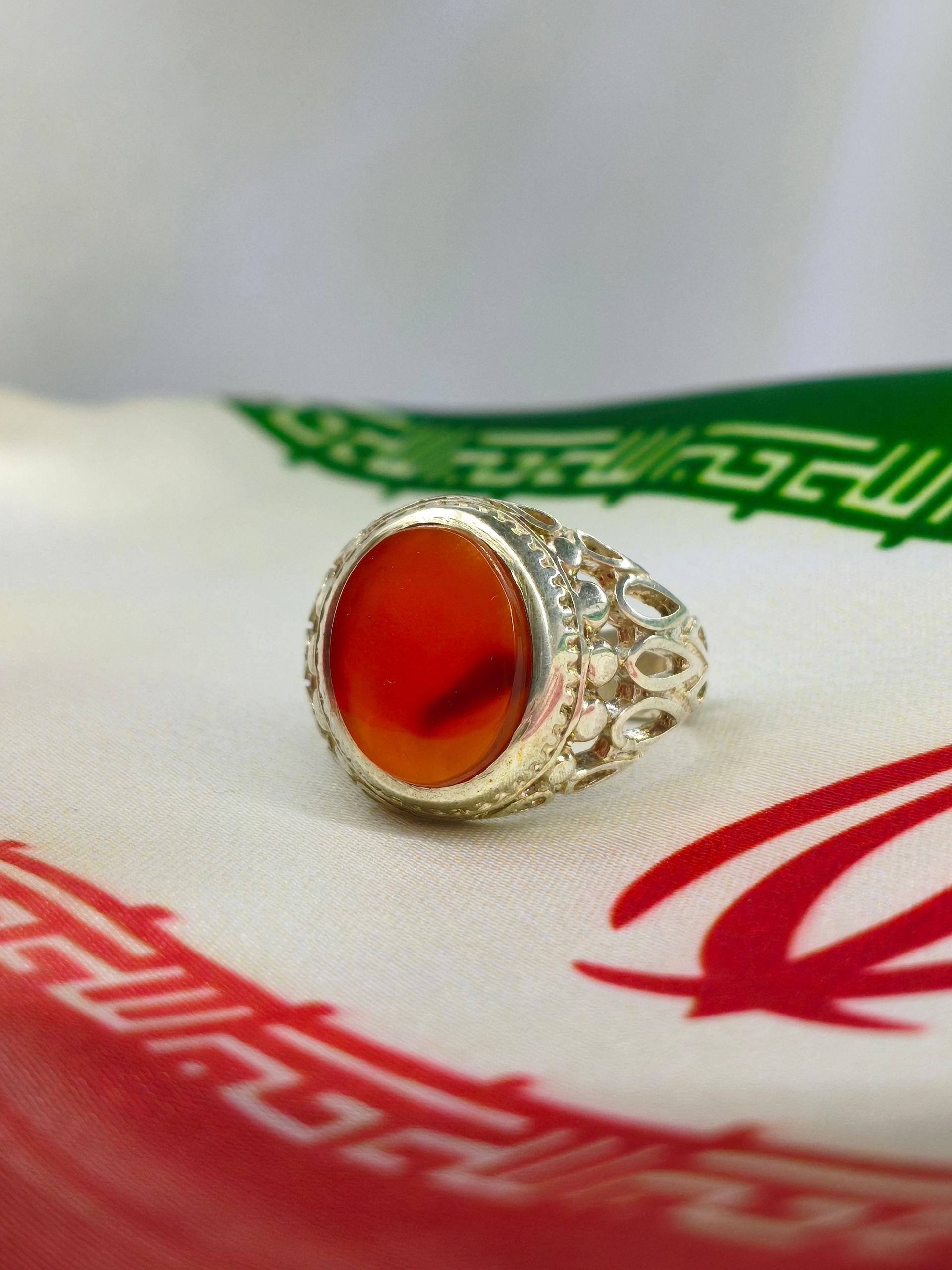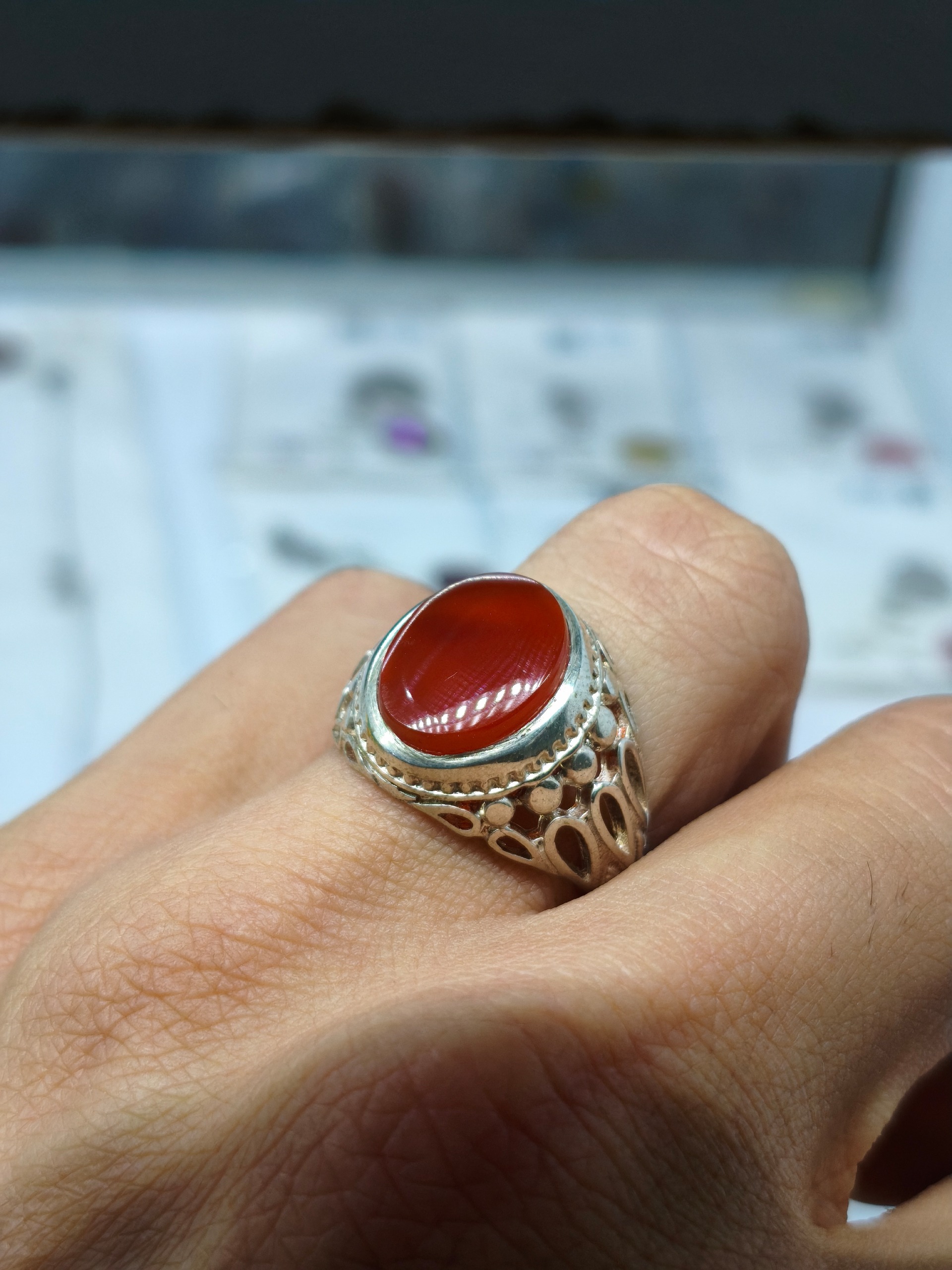 انگشتر نقره عیار بالا با نگین عقیق یمنی اصل