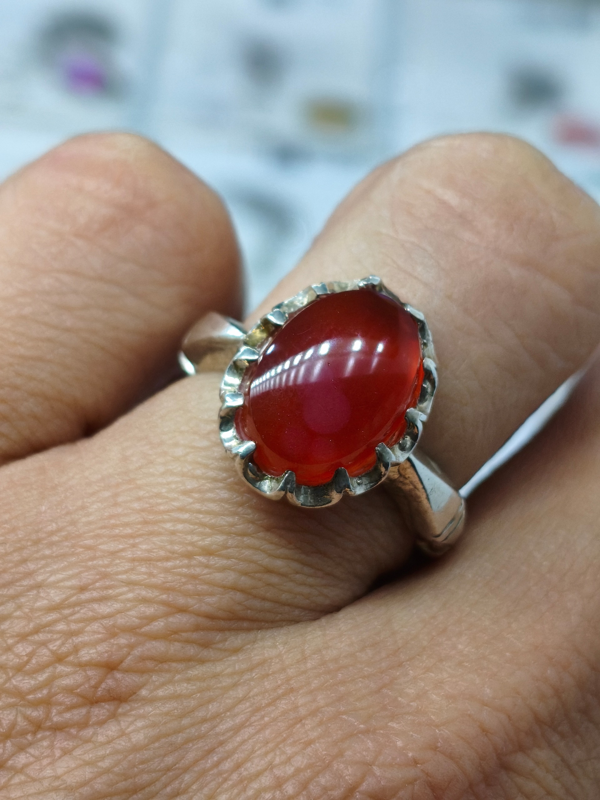 انگشتر نقره عیار بالا با نگین عقیق یمنی اصل