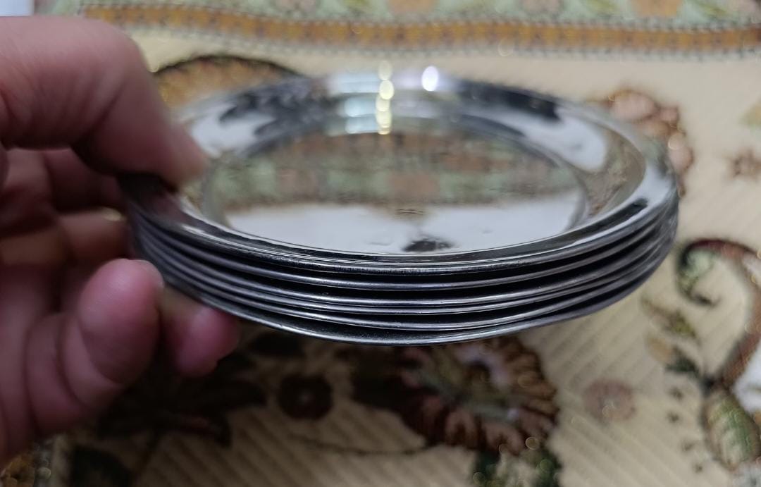 دست کامل 6تایی سینی قند پهلو یا دست گردون ، قدیمی پهلوی ، قهوه خونه ای ، جنس برنجی ، تقریباً تمیز و مرتب ، توجه داشته باشید که چنین کارهایی رو بصورت دست کامل خیلی به ندرت میتوان پیدا کرد ، کیفیت و ابعاد مطابق تصویر ، فروش بصورت دست 6تایی