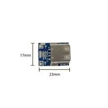 این محصول، ماژول پاوربانک مینی مدل T6845 در ابعاد 23*17*13 میلی متر می باشد. این ماژول از دسته ماژولهای شارژر پاور بانکی است که دارای یک ورودی میکرو USB و یک خروجی 1 آمپر پورت USB است. این محصول شارژر باتری لیتیوم با توانایی کنترل تراز شاژر باتری است و