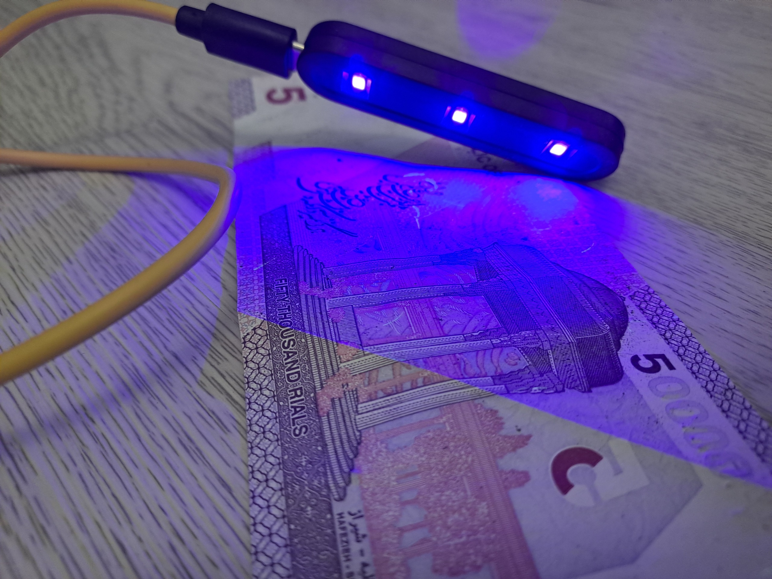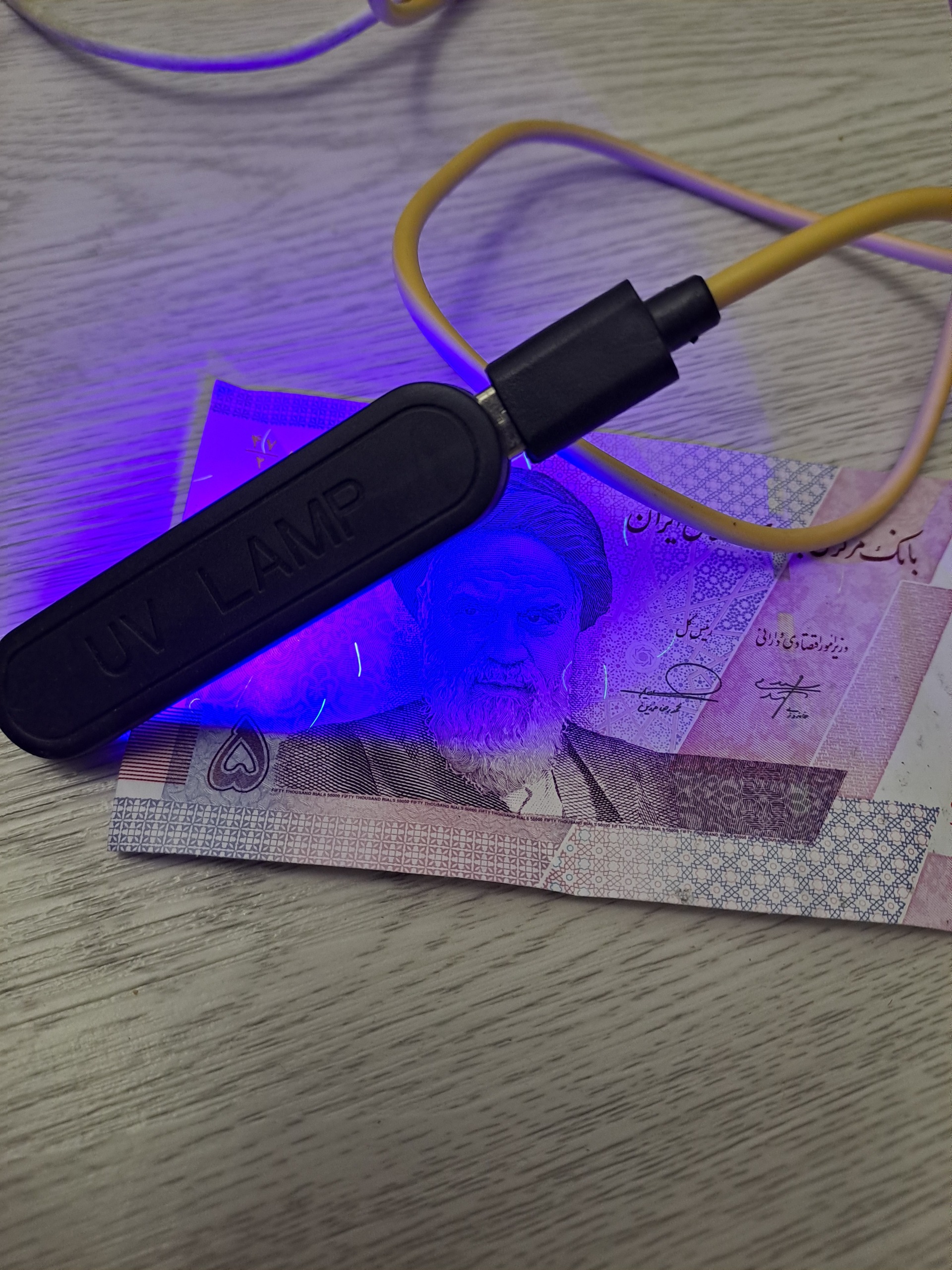 لامپ یو وی همراه کابل یو اس بی به راحتی در مغازه و محل کار به کامپیوتر و یا سارژر موبابل وصل میشه و برای تست اسکناس میشه ازش استفاده کرد
