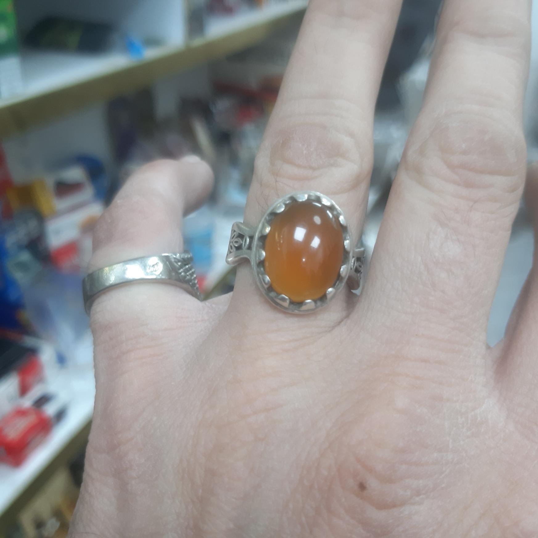 انگشتر قدیمی نقره 925 دستساز نگین عقیق اصل