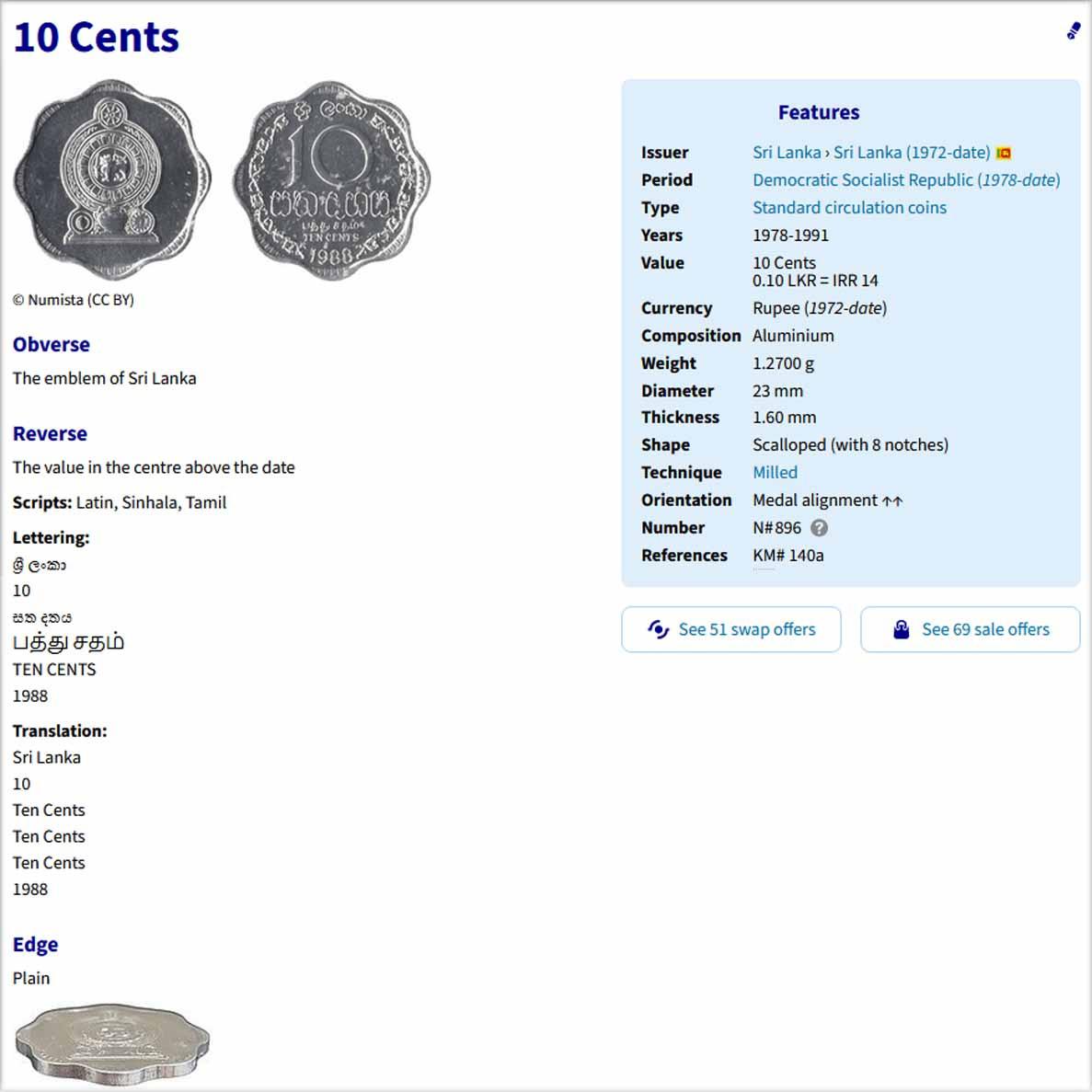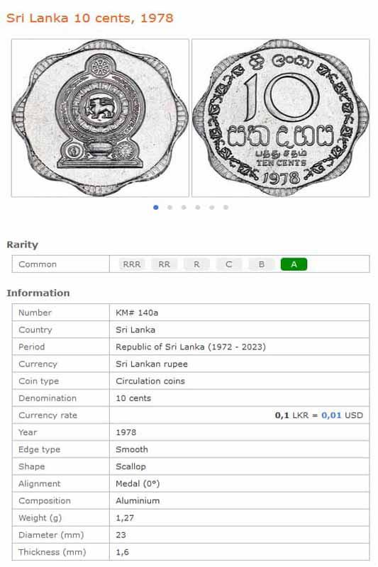سکه 10 سنت سریلانکا 1978 (نایاب)